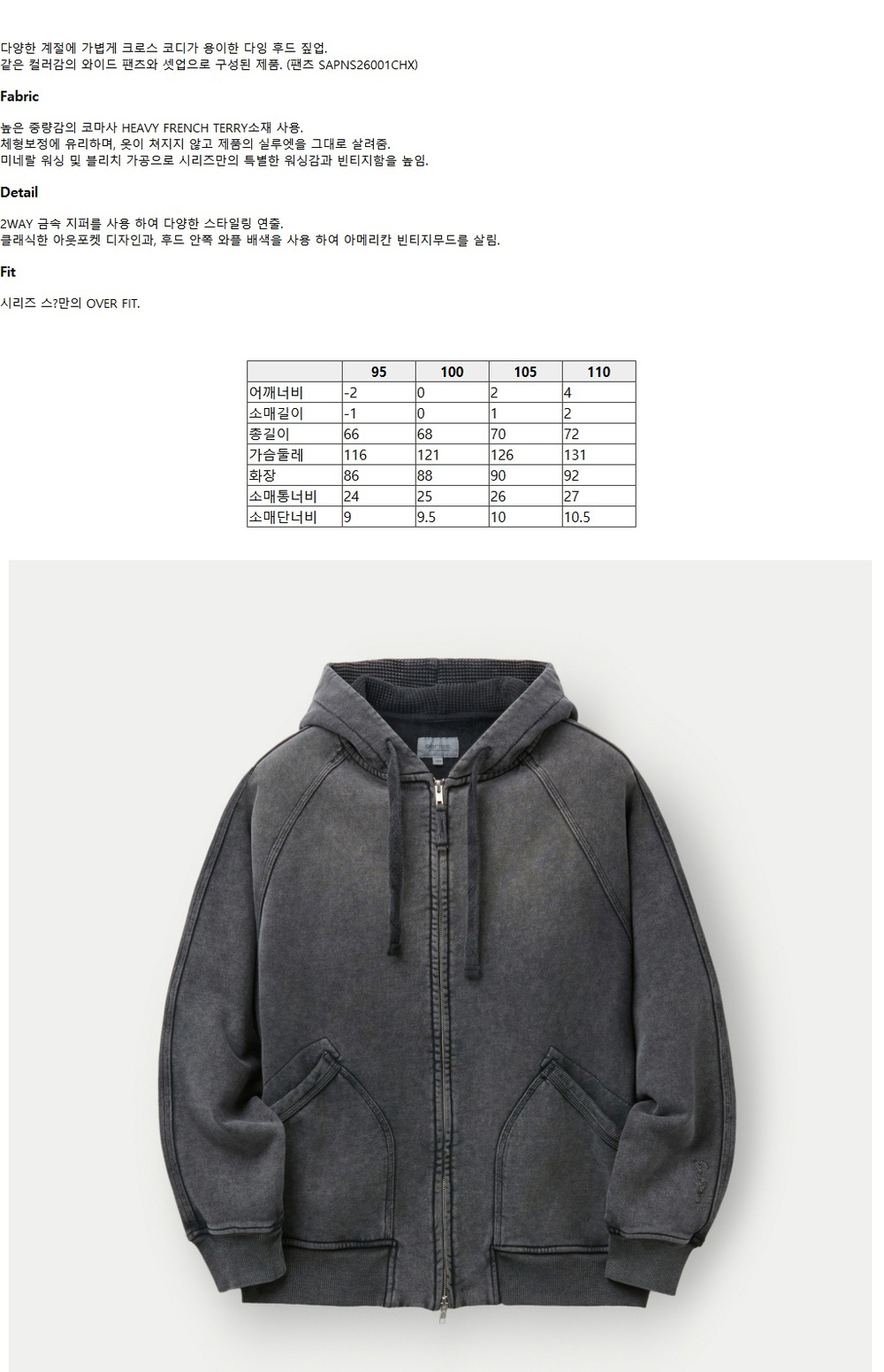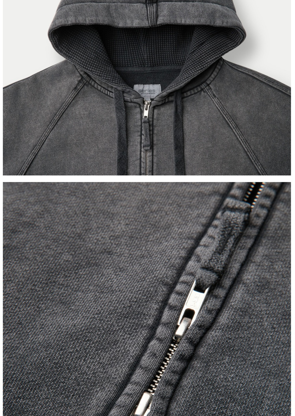 시리즈 셋업 미네랄 워싱 후드 집업 차콜