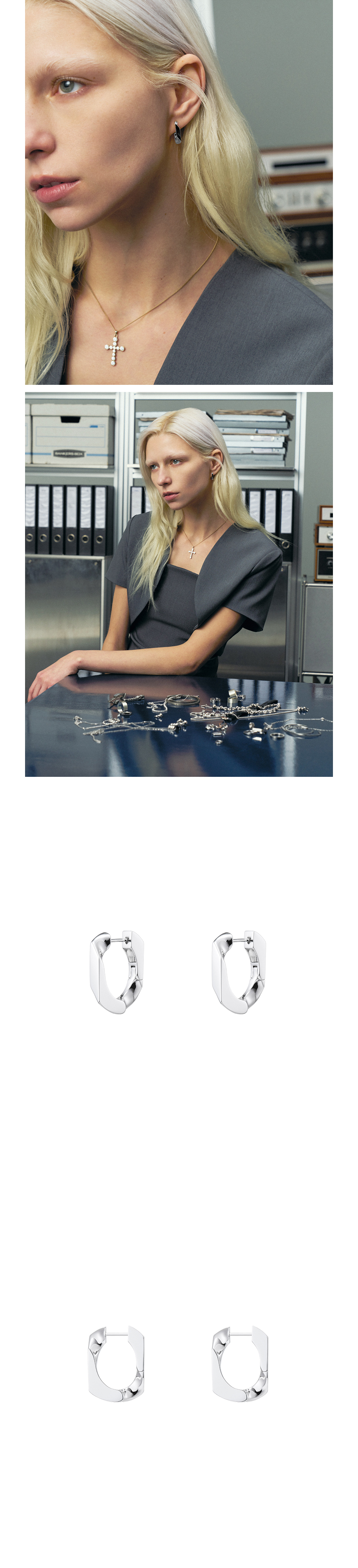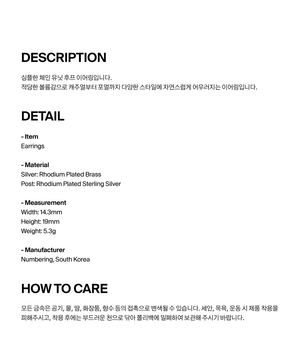 넘버링 #5351 체인 링크 후프 이어링 실버