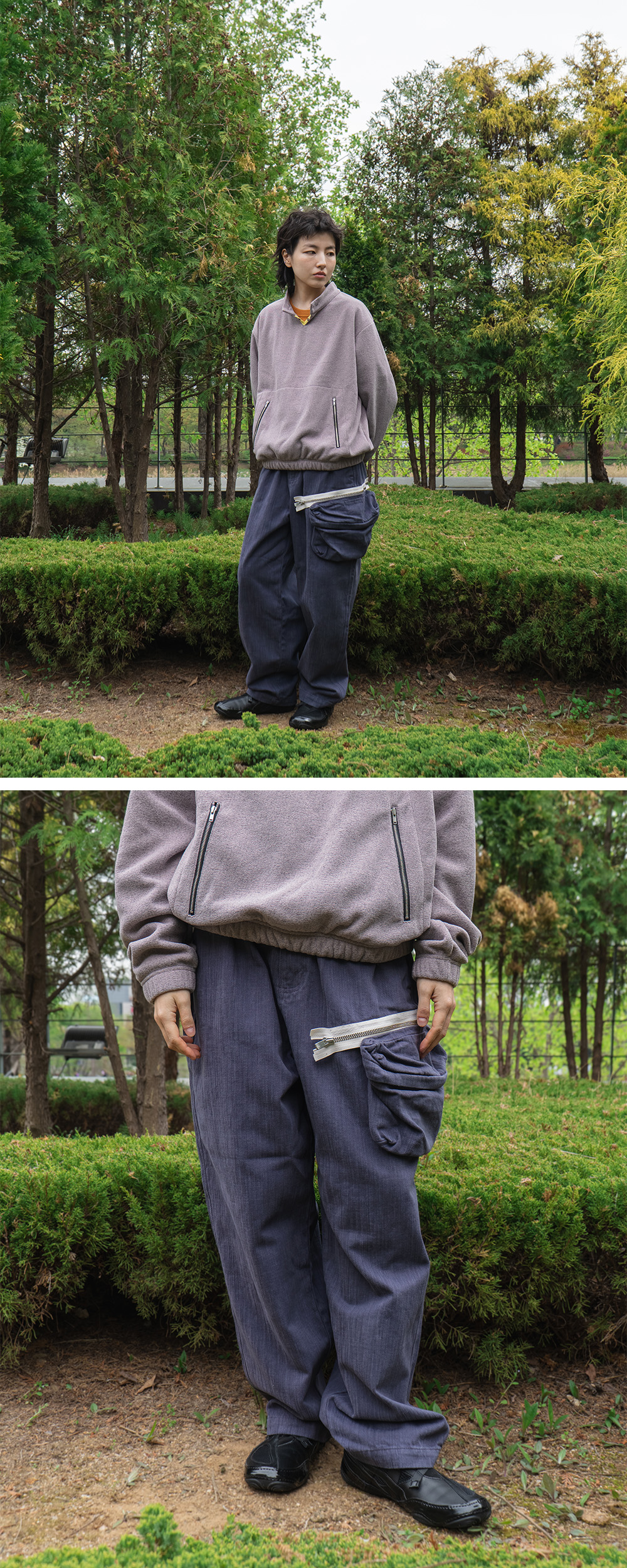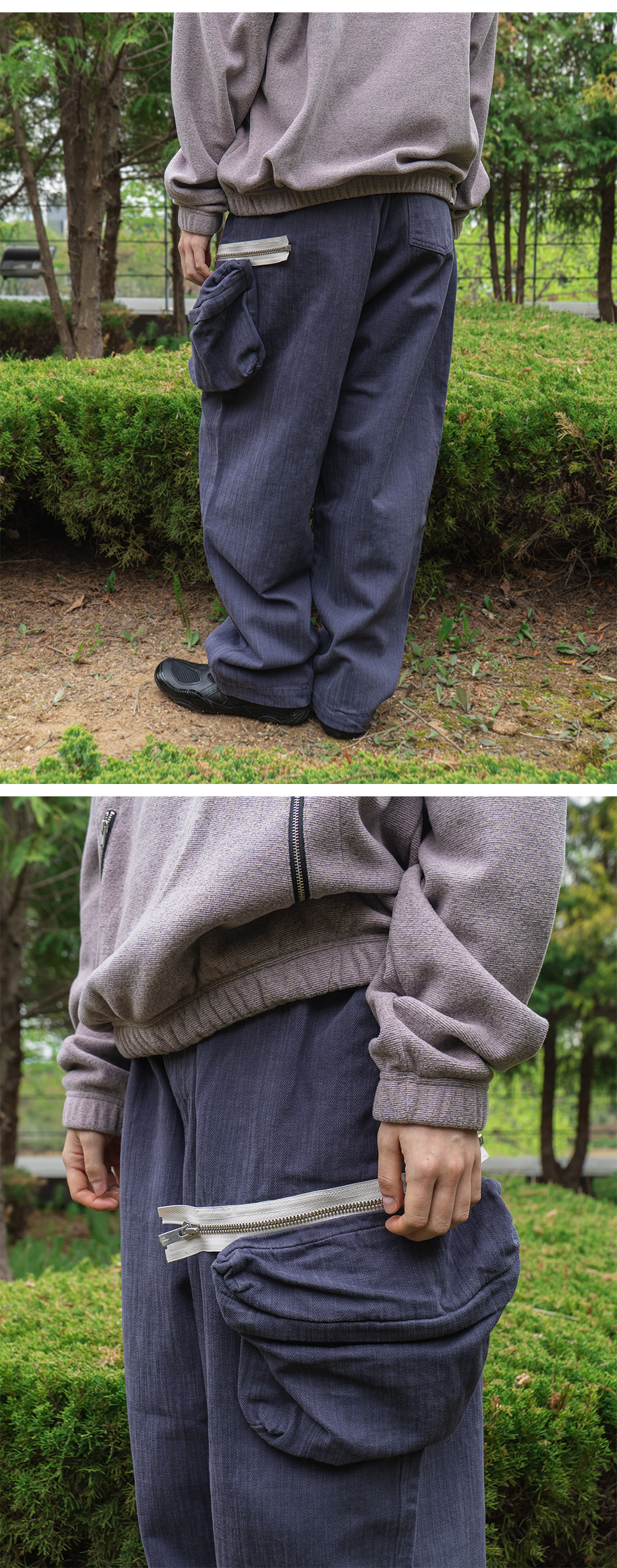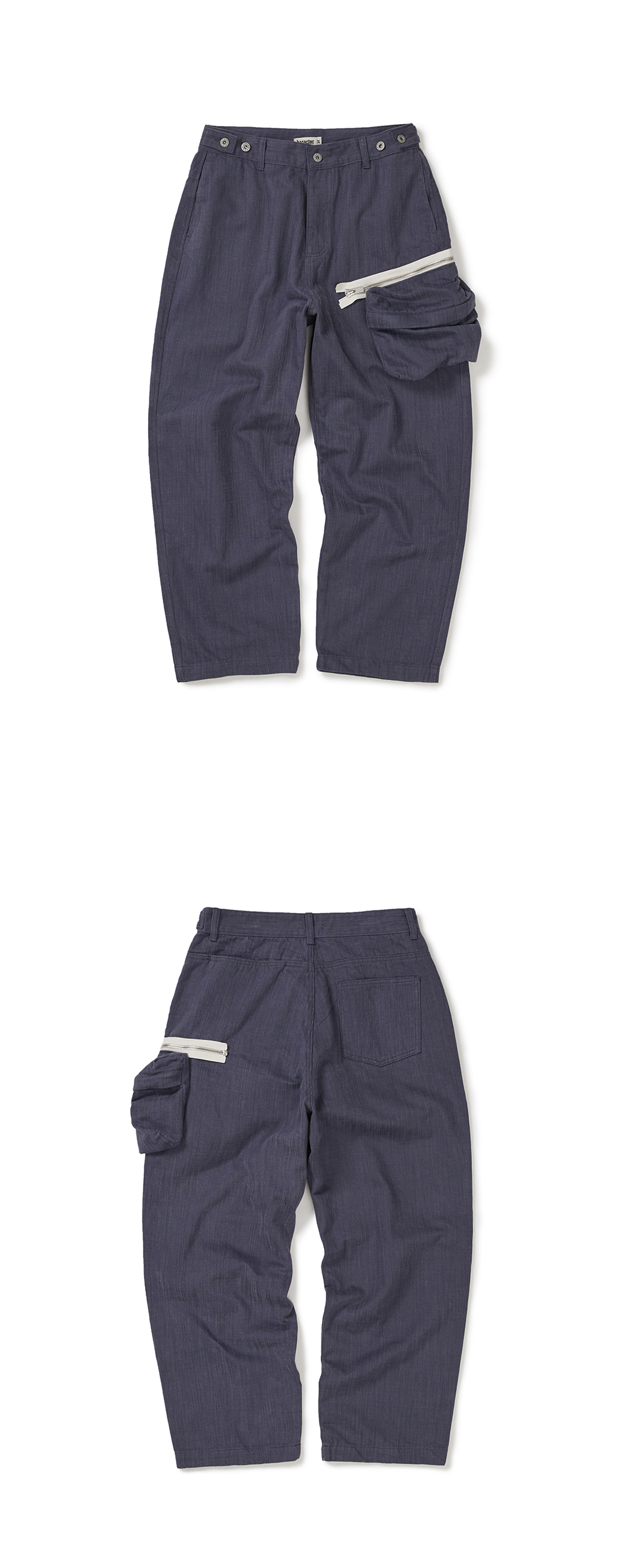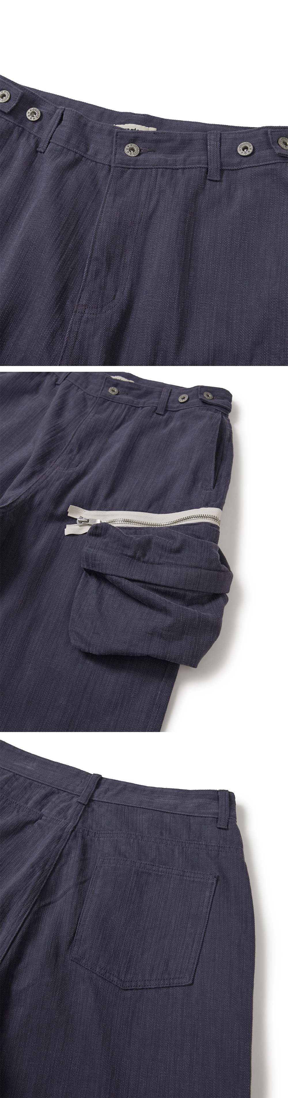 Product Info. - 자연스러운 텍스처의 고밀도 카치온 코튼 원단으로 제작된 트라우저 - 복합 워싱 가공을 통해 내추럴하고 소프트한 터치감 - 릴렉스드 핏 테이퍼드 실루엣으로 편안한 착용감 - 벨트라인 양 사이드 버튼 어드저스터로 허리 사이즈 조절 가능 - 측면 탈착 가능한 파우치 디테일 - 파우치 YKK EXCELLA 지퍼 사양으로 높은 완성도와 안정적인 개폐감 *MODEL 166cm, wearing size 01