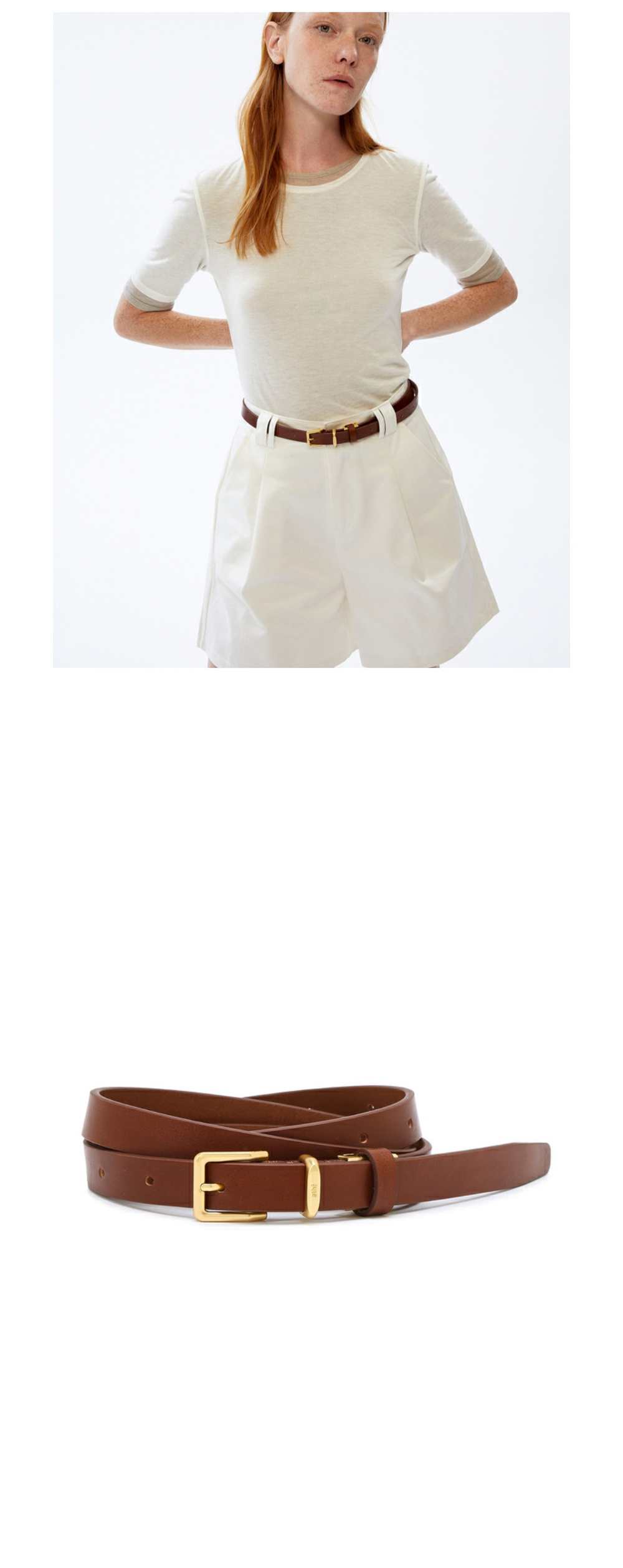 아떼 바네사브루노 액세사리 브라운 사각 버클 가죽 벨트 브라운