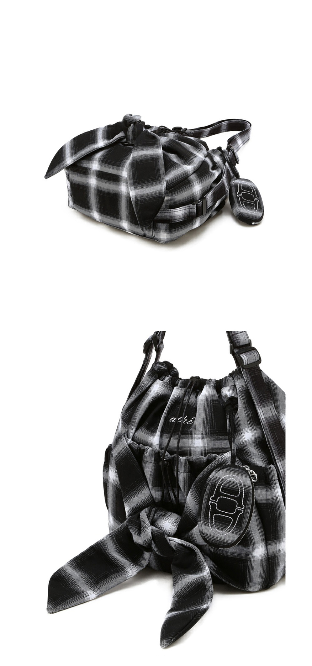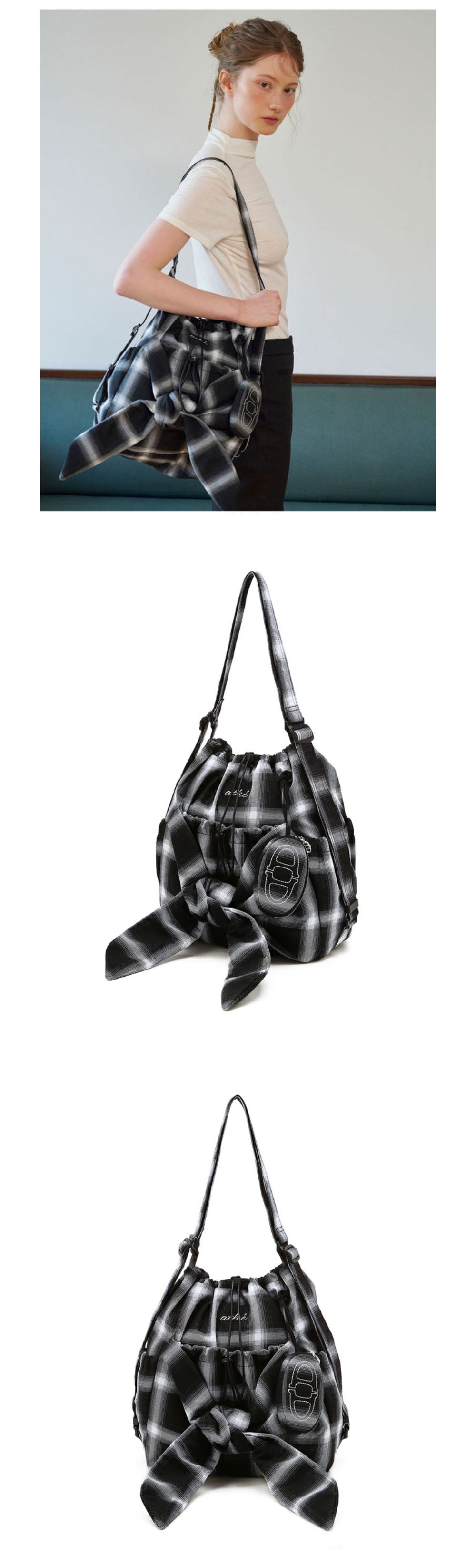 아떼 바네사브루노 액세사리 루반 블랙 체크 리본 백팩 겸 숄더백 S 블랙