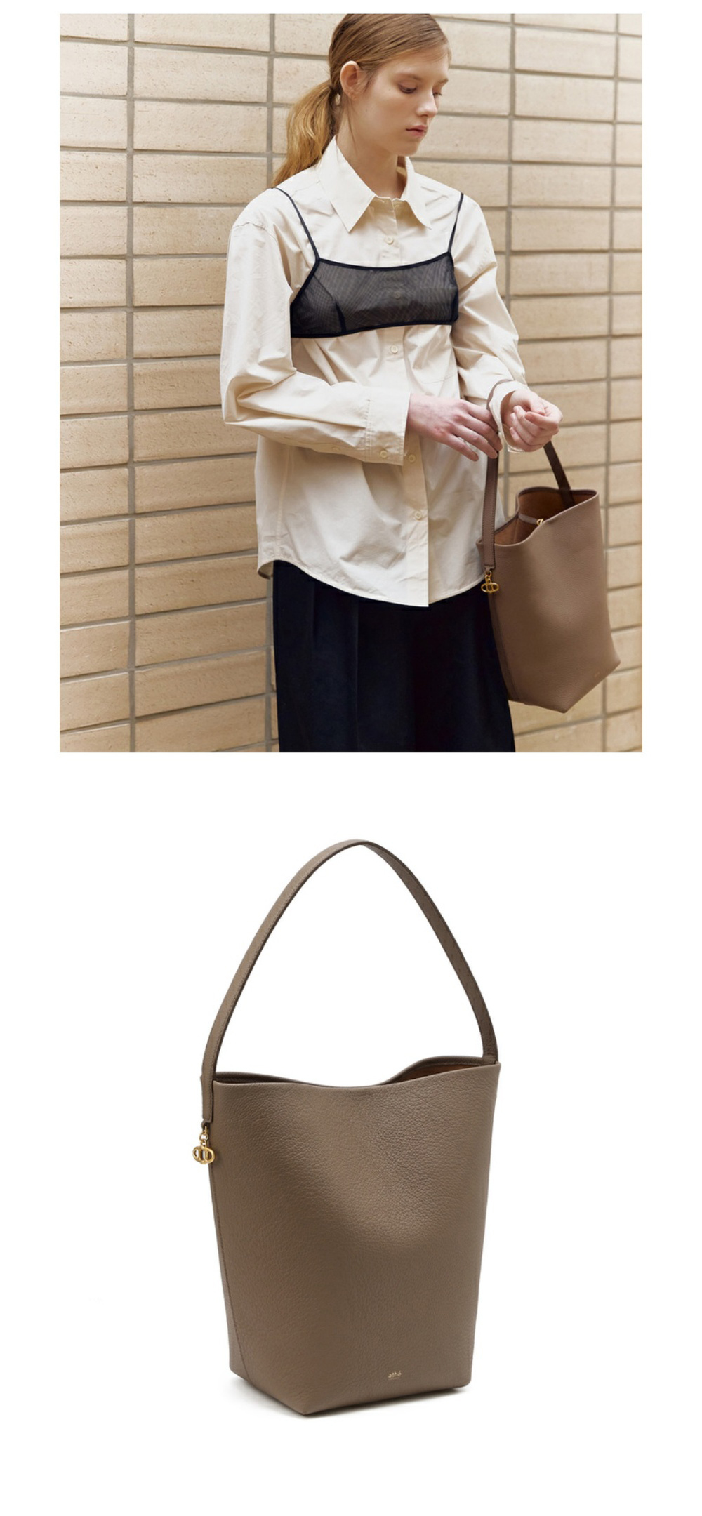아떼 바네사브루노 액세사리 파니에 모카무스 레더 파니에 버킷백 L 다크 베이지