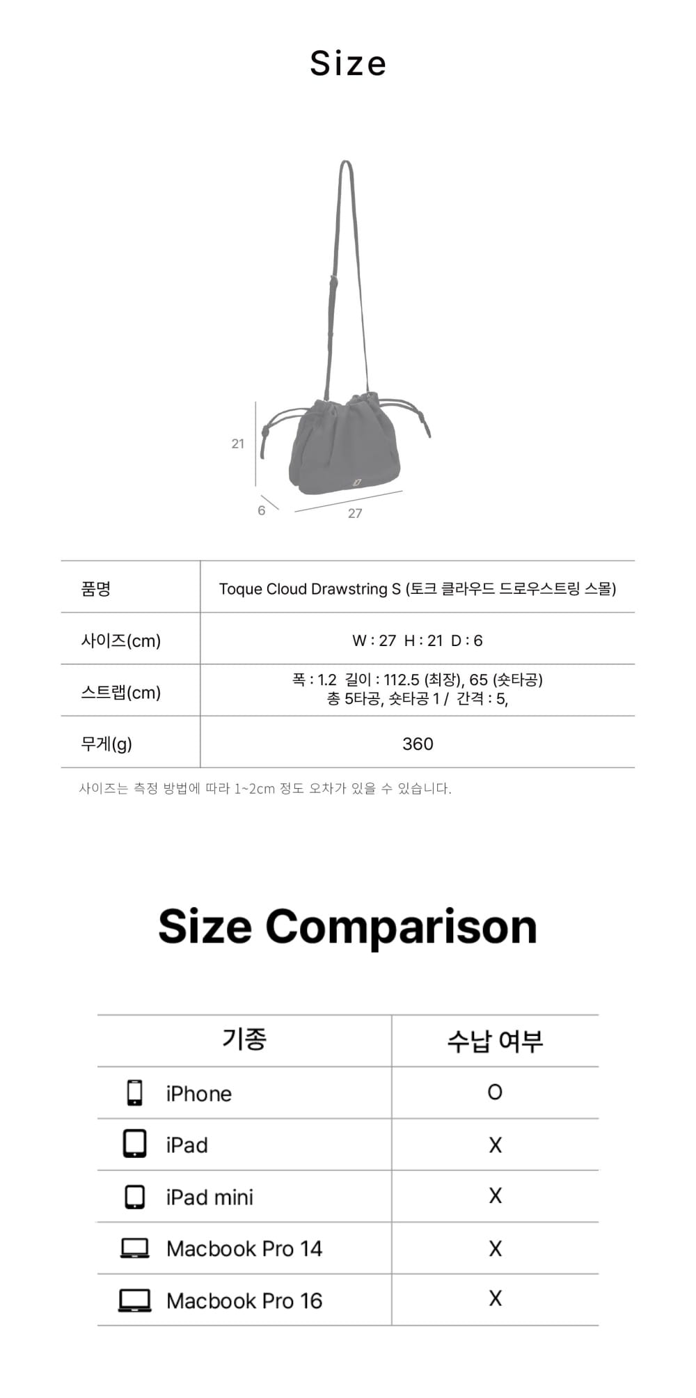 구름처럼 폭신한 소재를 사용하여 소프트한 터치감과 유연함이 특징드로우스트링 디자인으로 여닫이가 편안함