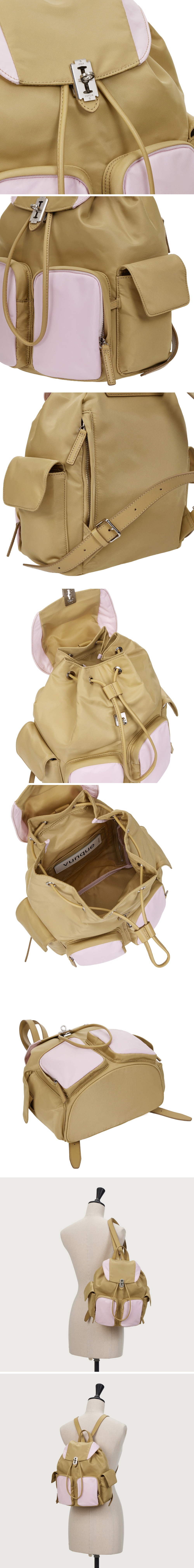 헤이 라인의 캐쥬얼 원단 백팩기존 스타일에 컬러 배색 포인트를 주어 디자인에 포인트4개의 외부 포켓이 있어 분리수납 가능후면에는 지퍼가 있어 물건을 쉽게 넣고 뺼 수 있도록 디자인포켓 옆면에 가죽 고리가 있어 참을 달아 다양한 연출 가능