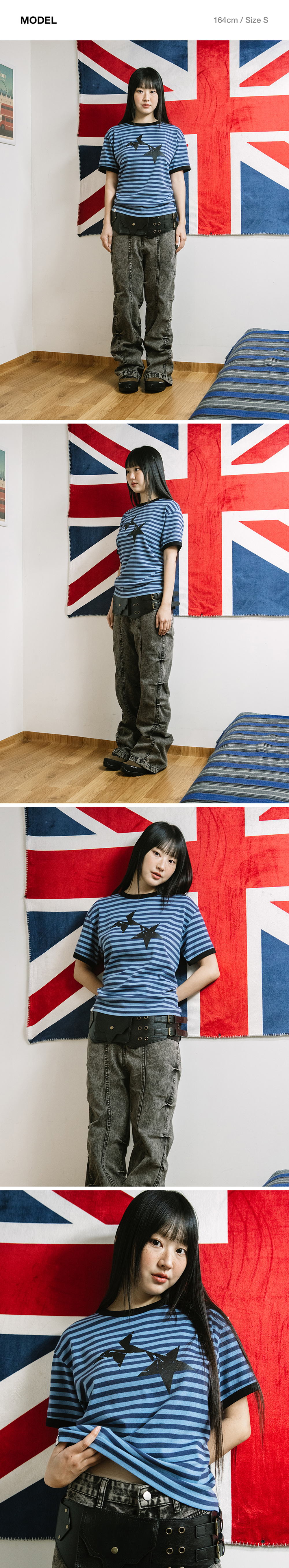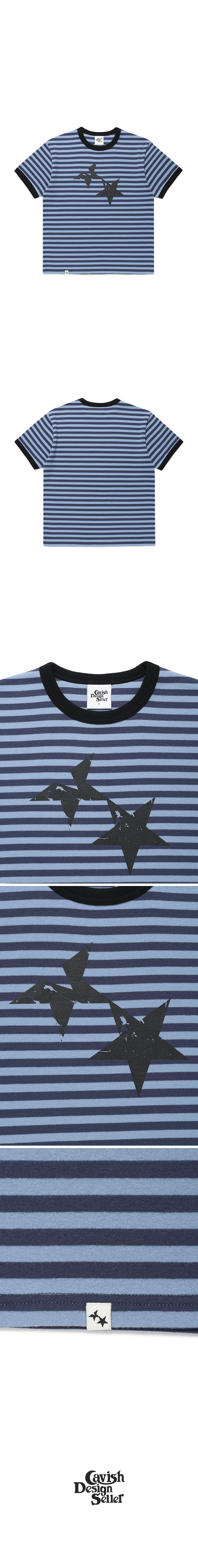 카비시 스트라이프 트윈 스타 링거 숏슬리브 티셔츠 블루