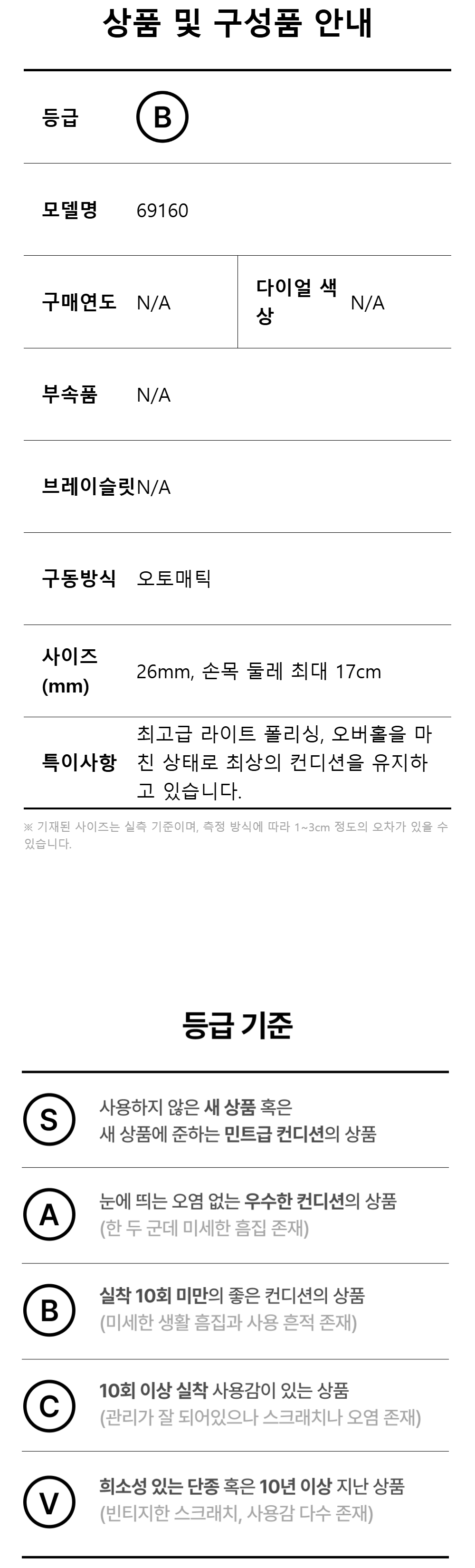 롤렉스 오이스터 퍼페츄얼 26mm 스틸 69160