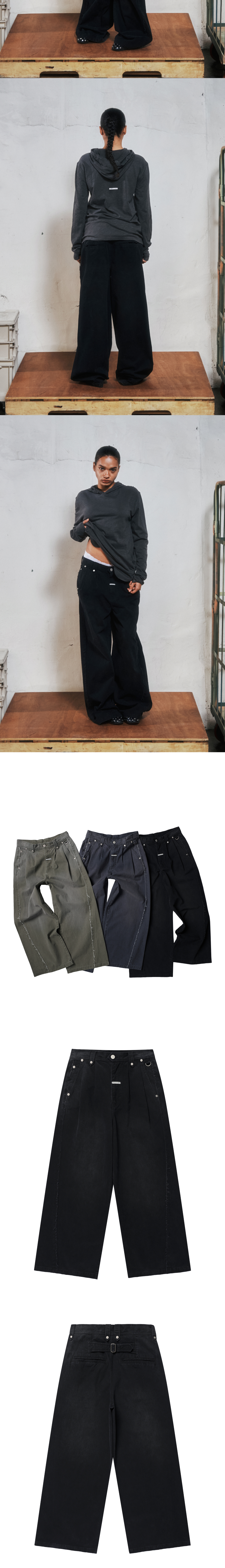 더바이닐하우스 새그 와이드 벨티드 팬츠 블랙