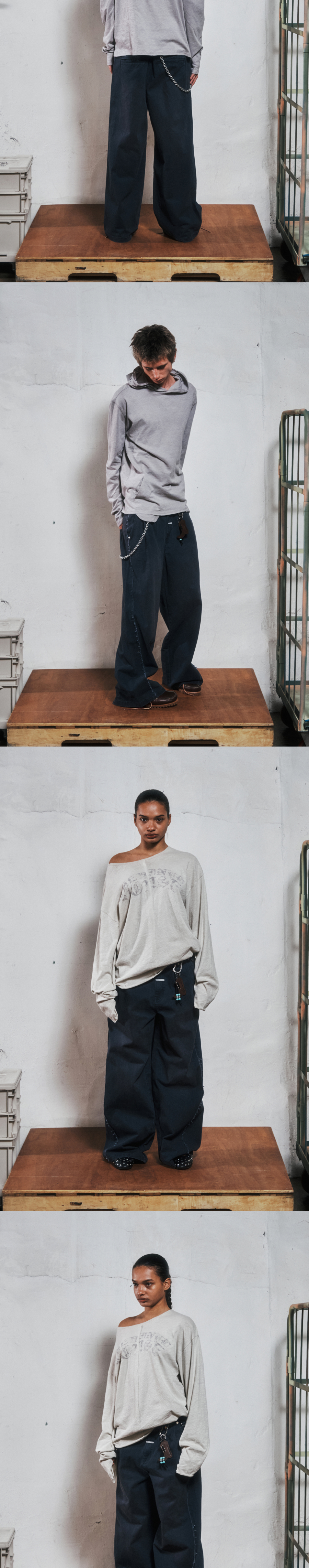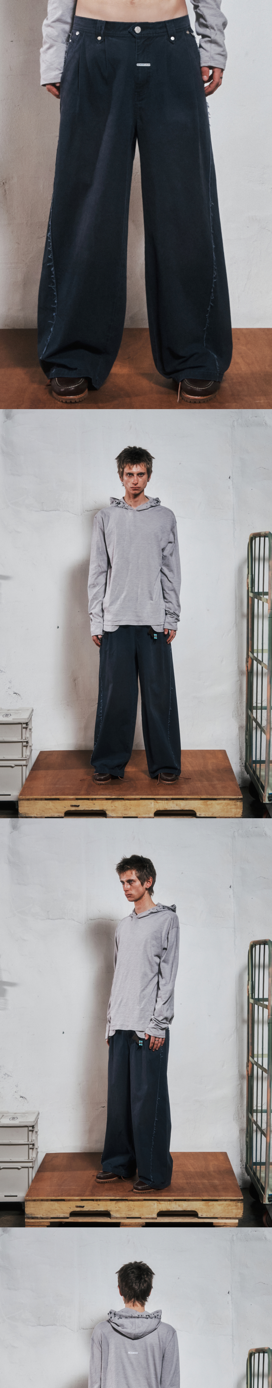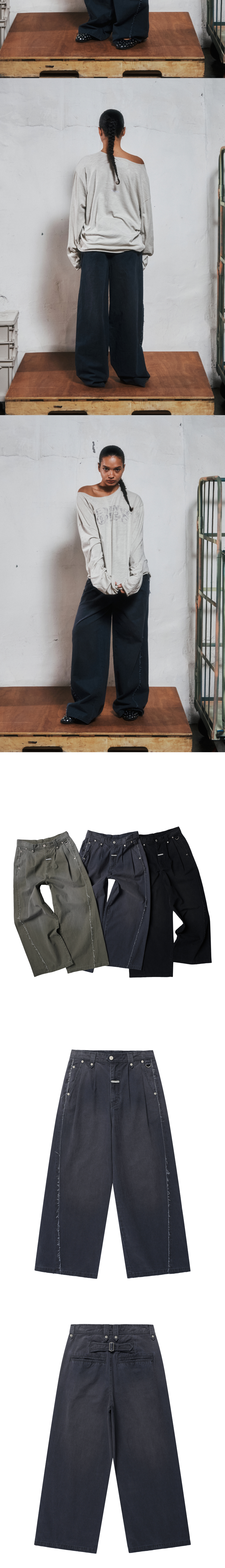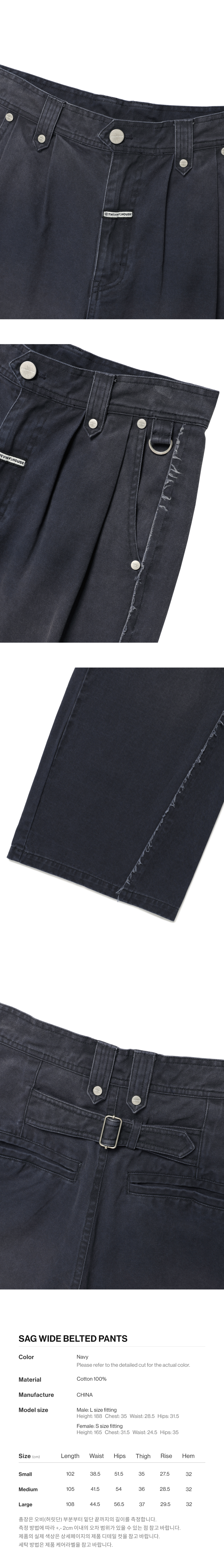더바이닐하우스 새그 와이드 벨티드 팬츠 네이비
