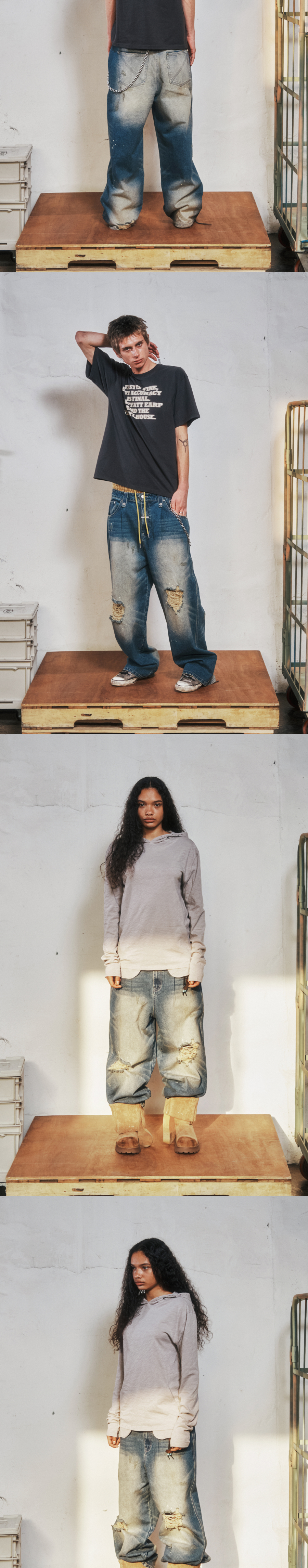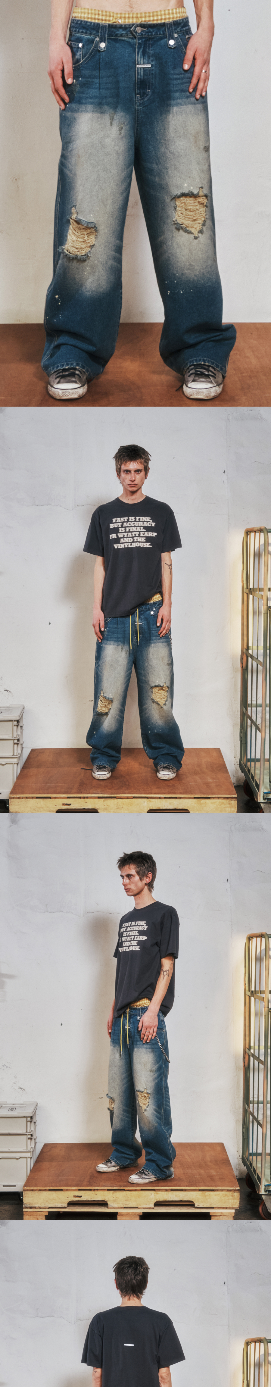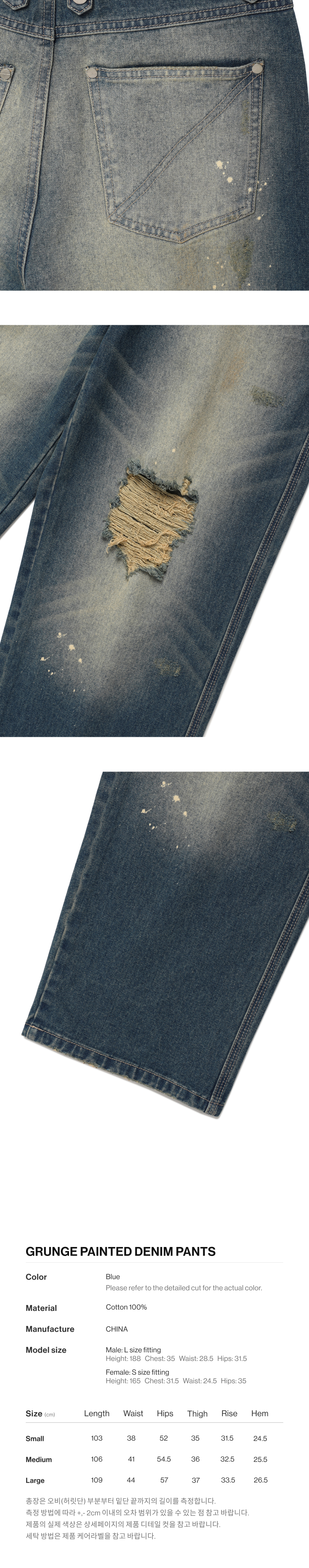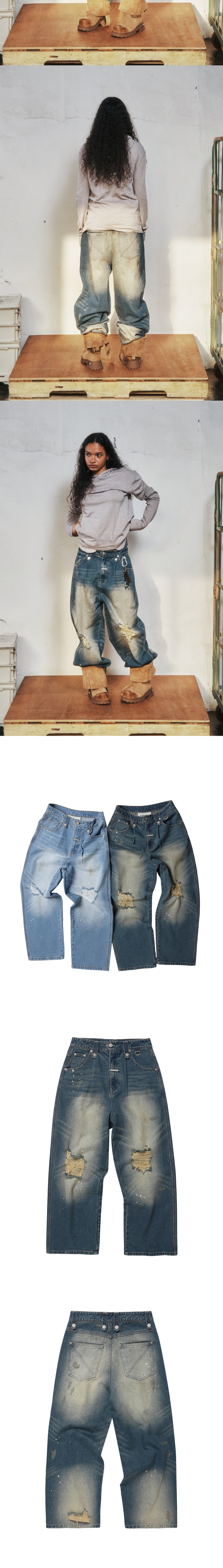 더바이닐하우스 그런지 페인티드 데님 팬츠 블루