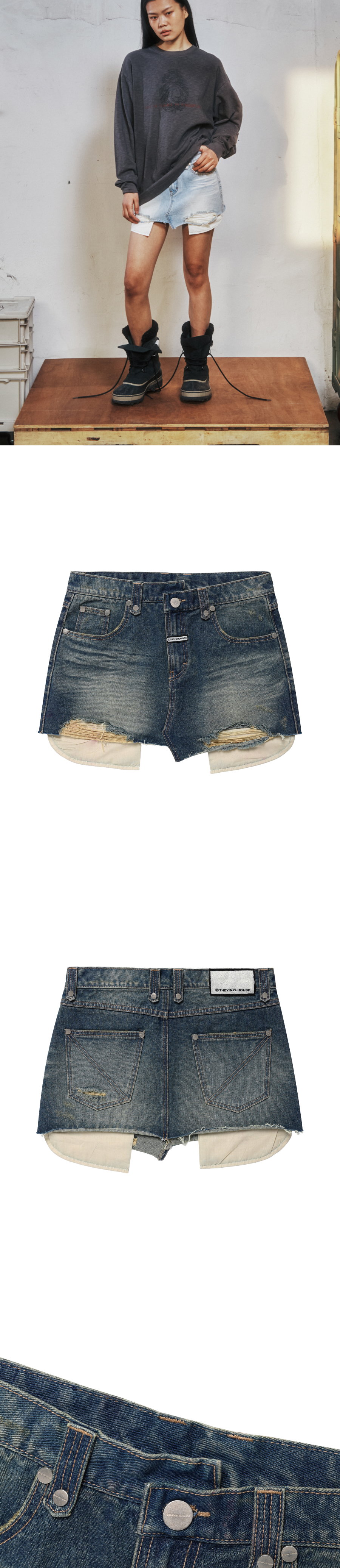 더바이닐하우스 언밸런스 마이크로 데님 스커트 (W) 블루