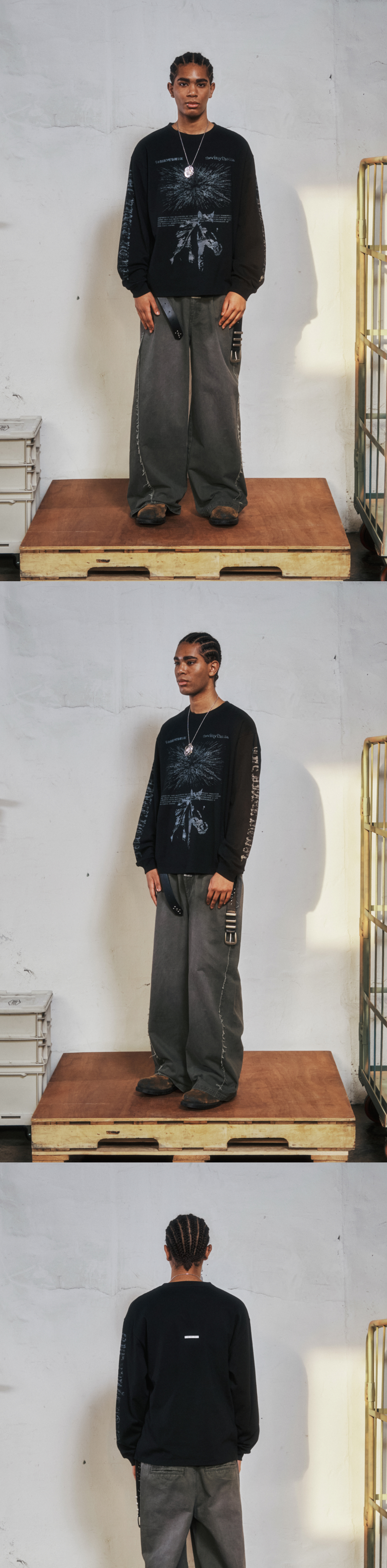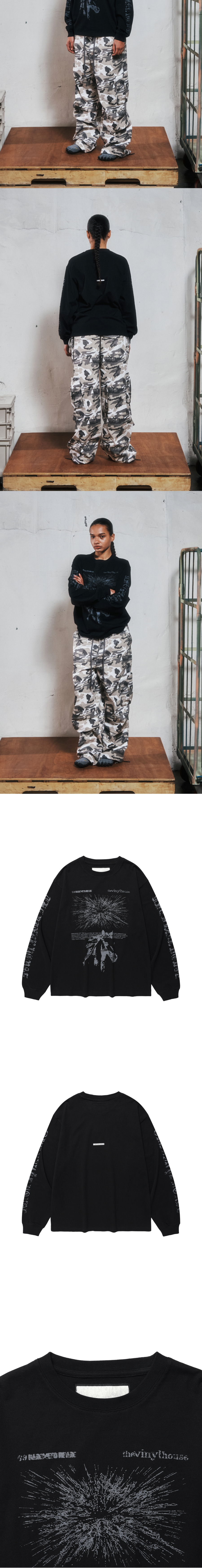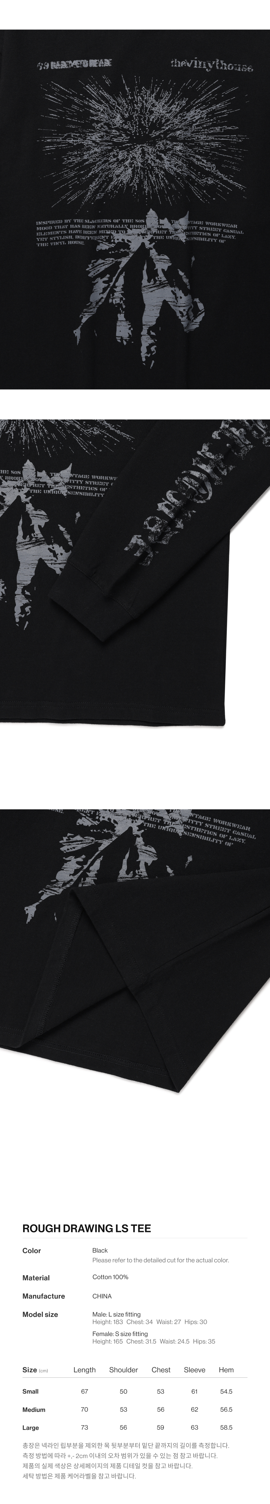 더바이닐하우스 러프 드로잉 롱슬리브 티 블랙
