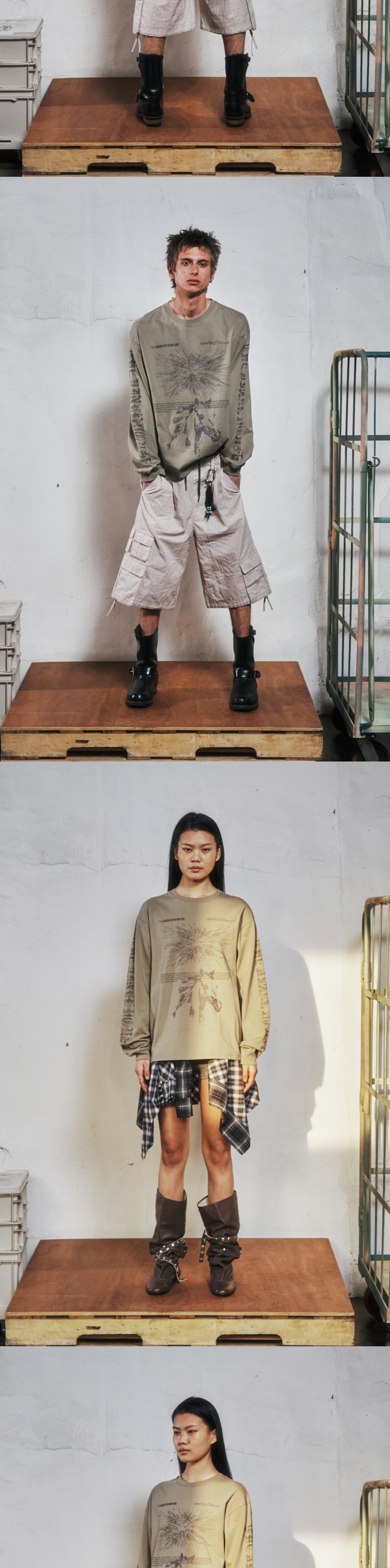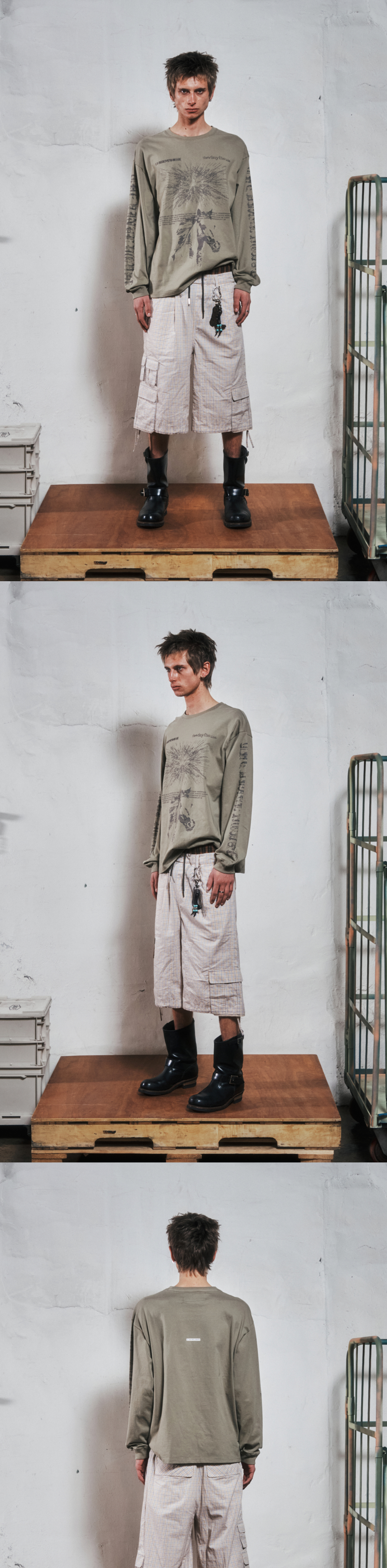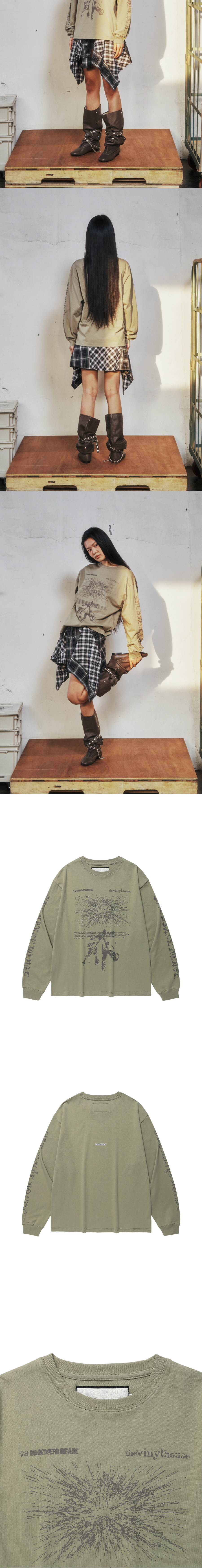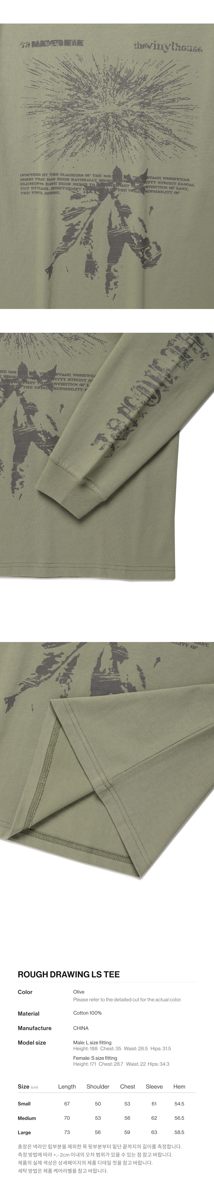 더바이닐하우스 러프 드로잉 롱슬리브 티 올리브