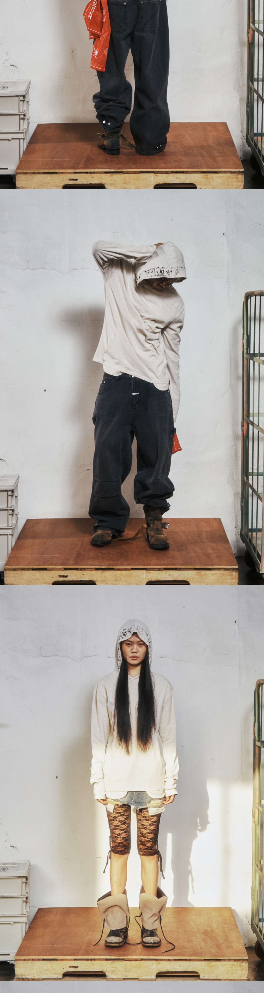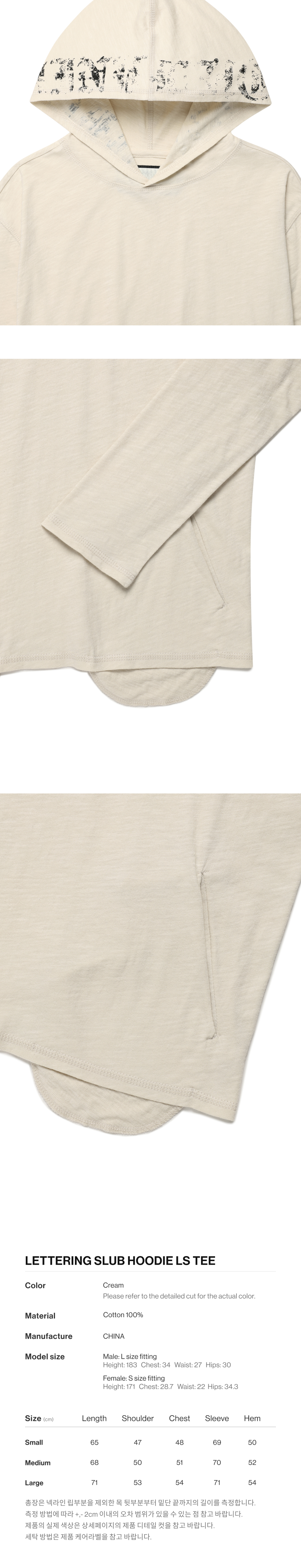 더바이닐하우스 레터링 슬럽 후디 롱슬리브 티 크림