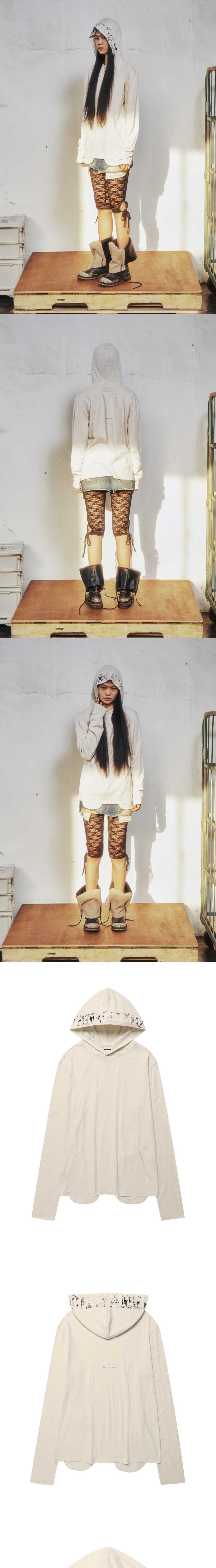 Thevinylhouse Lettering Slub Hoodie Ls Tee Cream