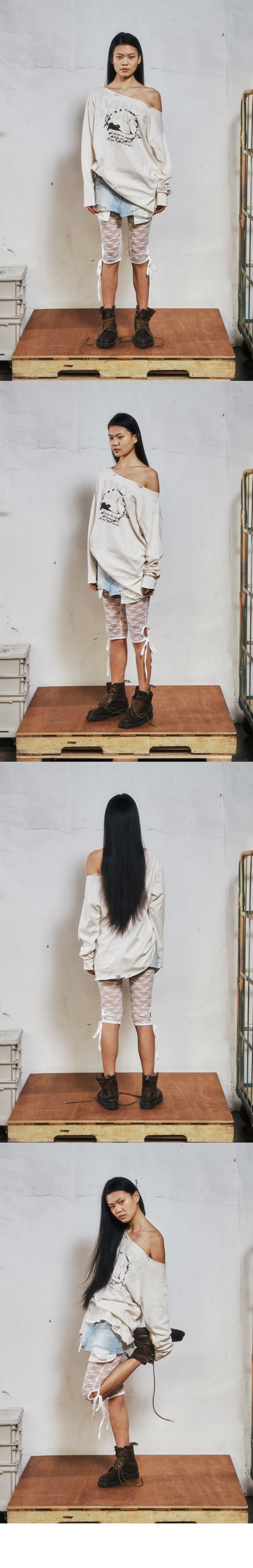 더바이닐하우스 로우 컷 오버 롱슬리브 티 (W) 크림