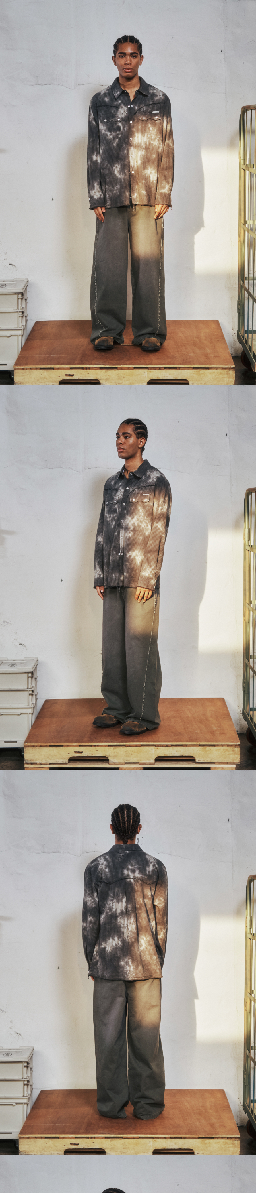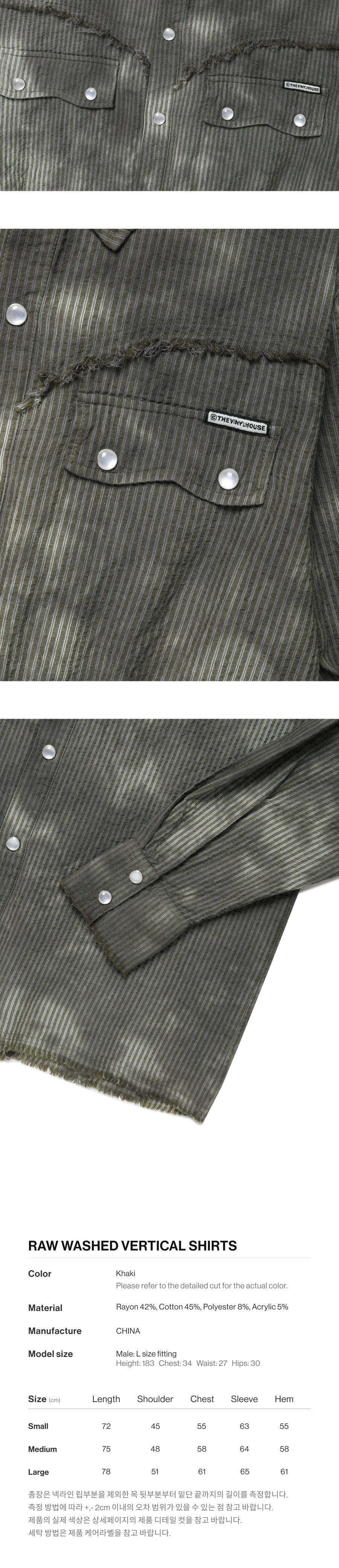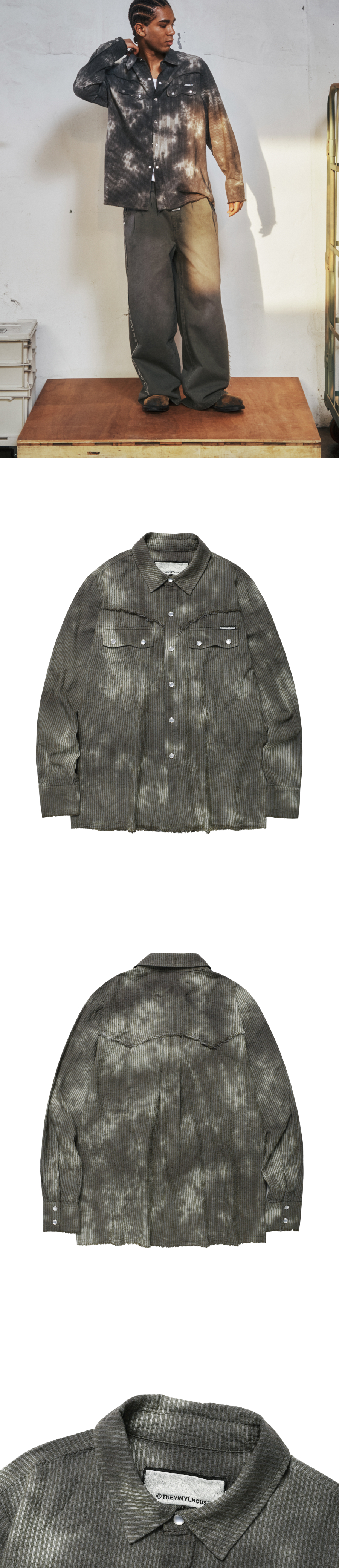 더바이닐하우스 로우 워시드 버티컬 셔츠 카키