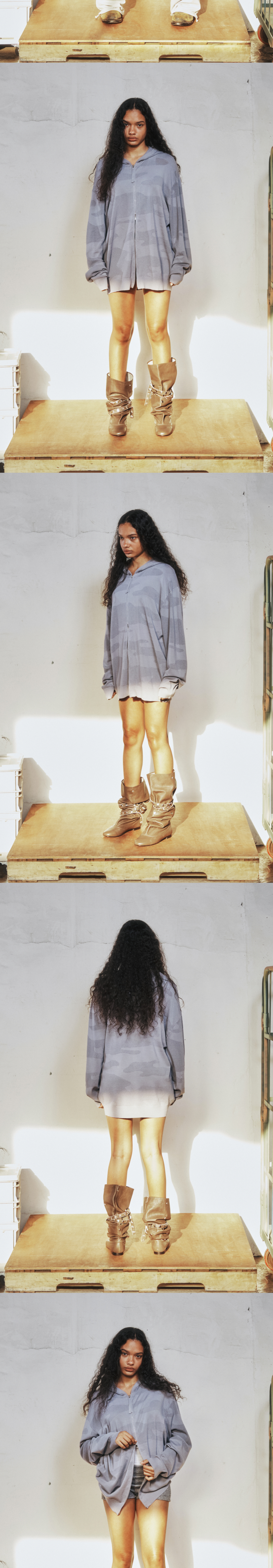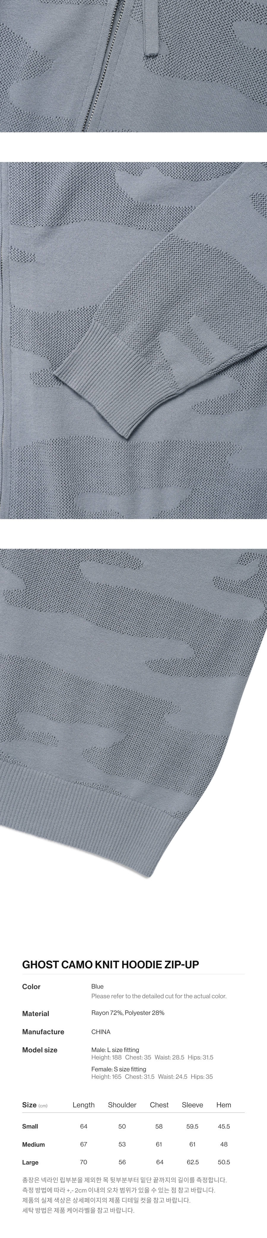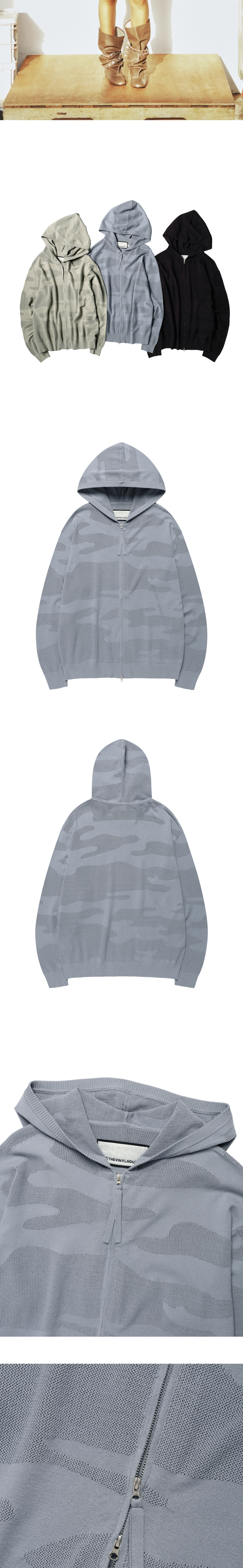더바이닐하우스 고스트 카모 니트 후디 집업 블루