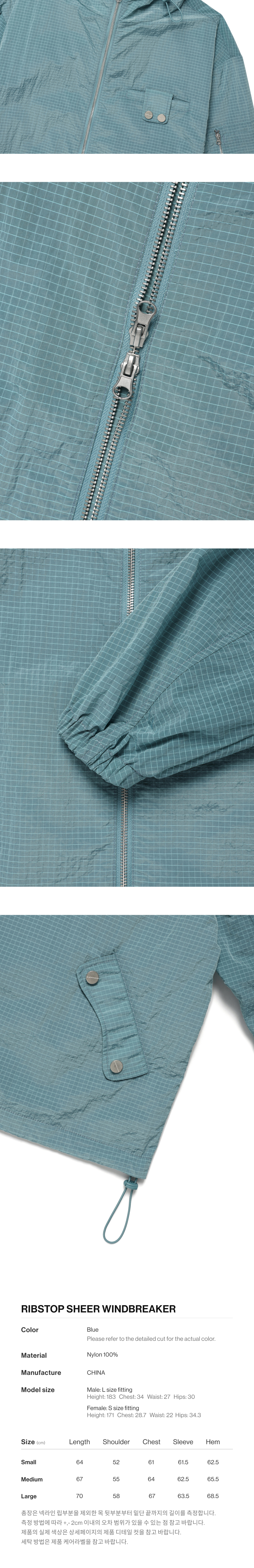 더바이닐하우스 립스탑 시어 윈드브레이커 블루