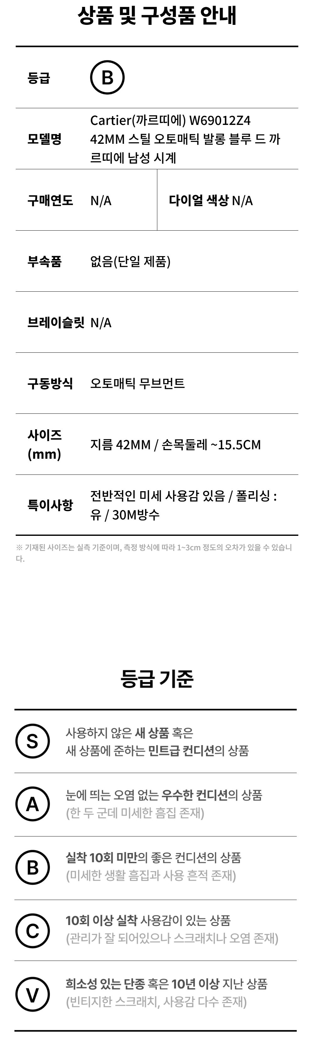 까르띠에 W69012Z4 42MM 스틸 오토매틱 발롱 블루 드 까르띠에 남성 시계