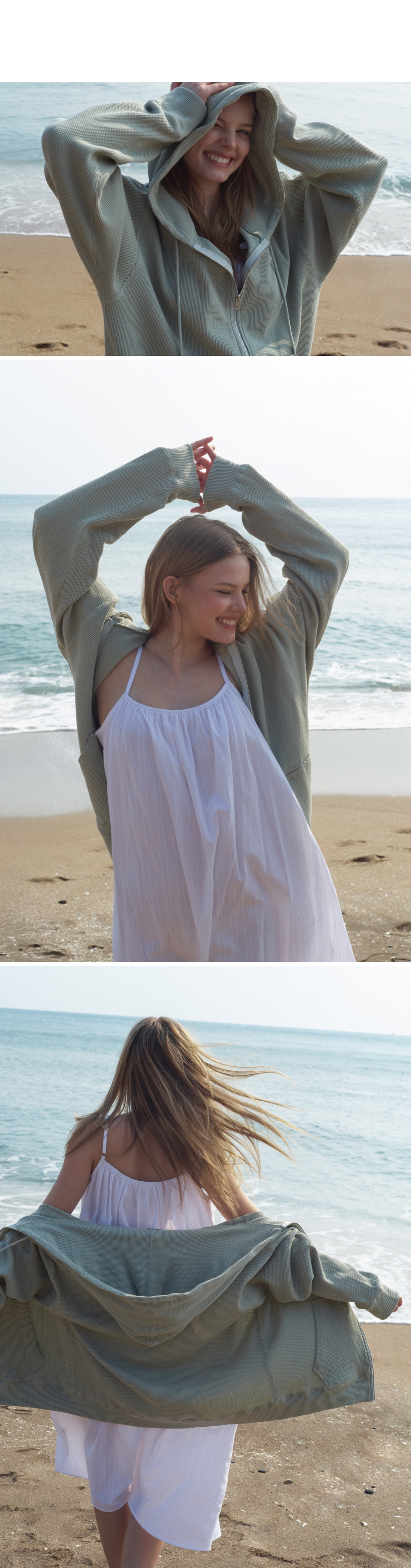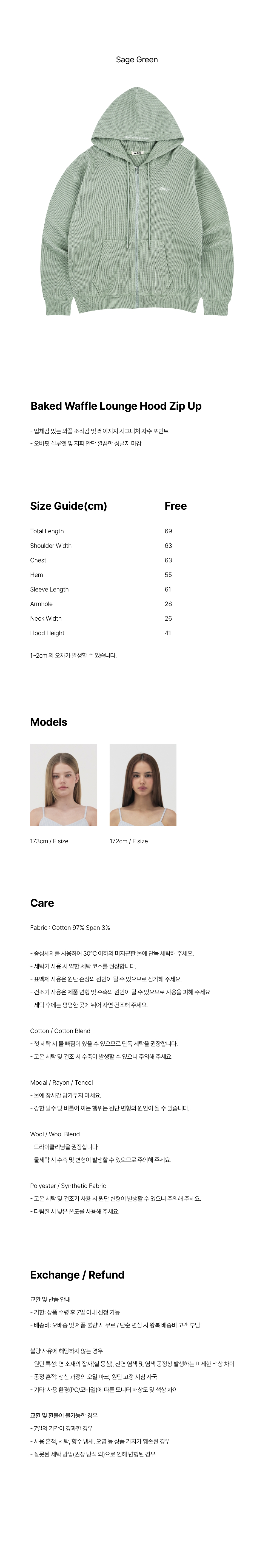 레이지지 베이크드 와플 라운지 후드 집업 세이지그린