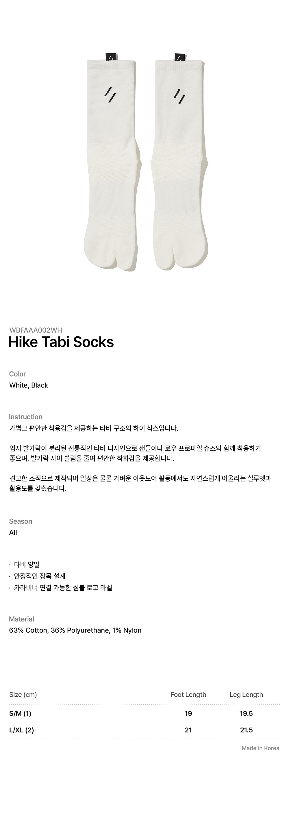 웰터 익스페리먼트 하이크 타비 양말 화이트