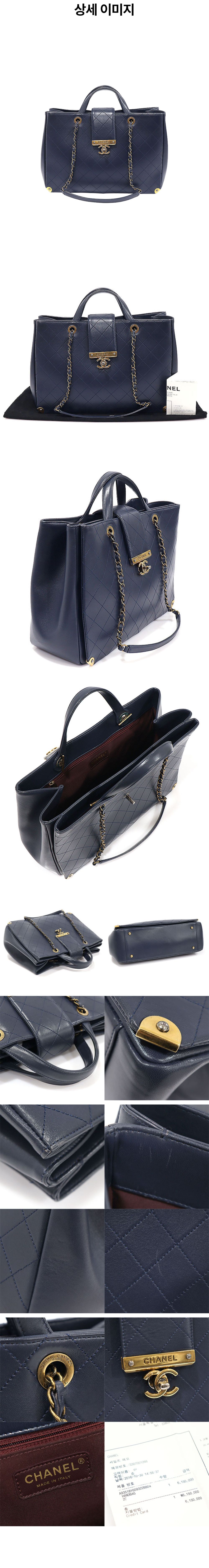 샤넬 A93518 네이비 카프스킨 퀄팅 메탈 체인 토트 2WAY (23번대)