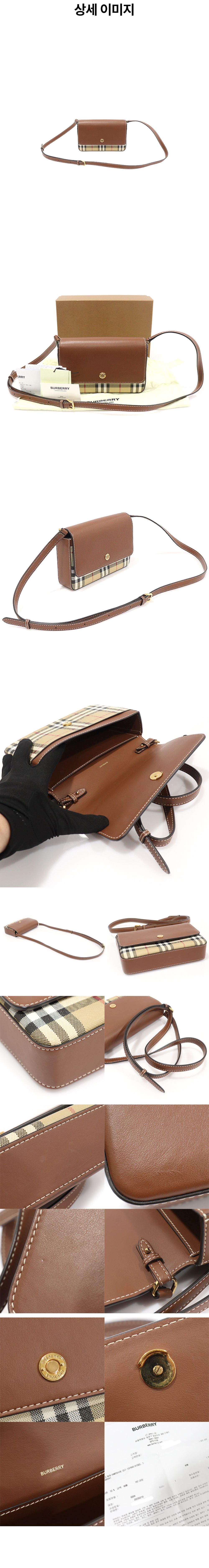 버버리 80580041 빈티지 체크 탠 카프스킨 금장 뉴햄프셔 크로스백