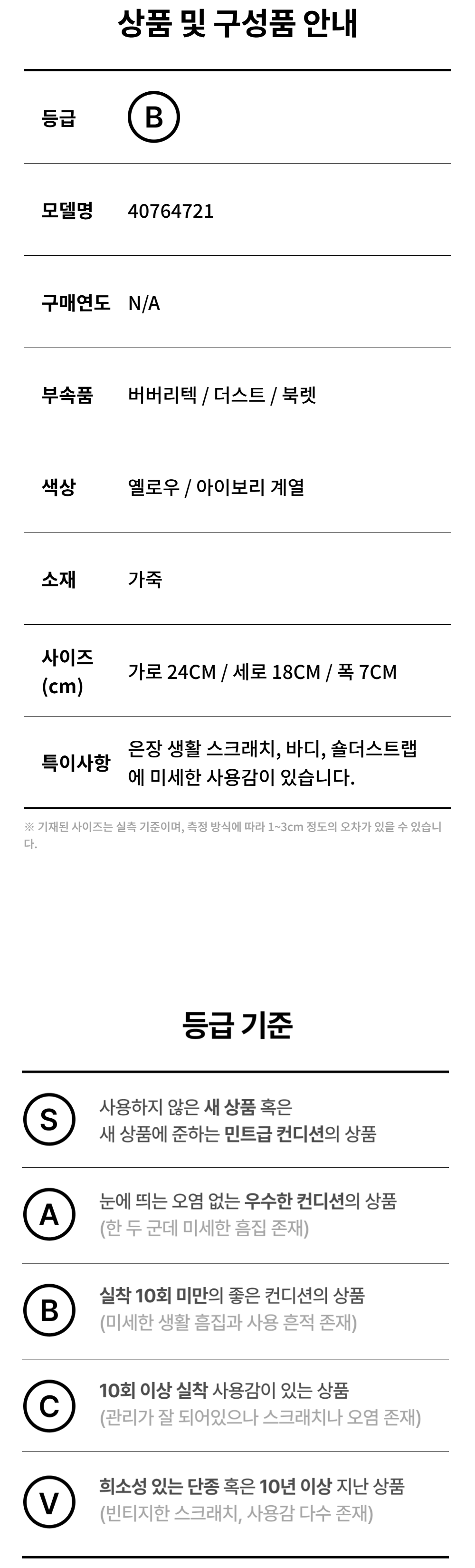 버버리 40764721 옐로우 라임스톤 바이컬러 그레인 레더 맥켄 스몰 크로스백