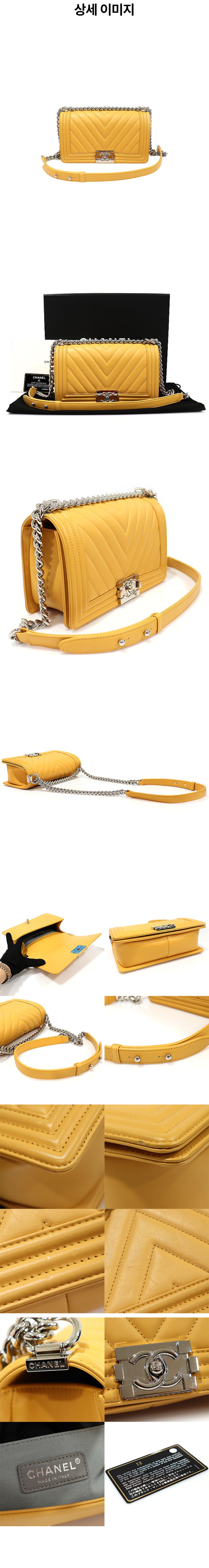 샤넬 A67086 옐로우 카프스킨 쉐브론 은장 올드 보이샤넬 미듐 숄더백 (22번대)