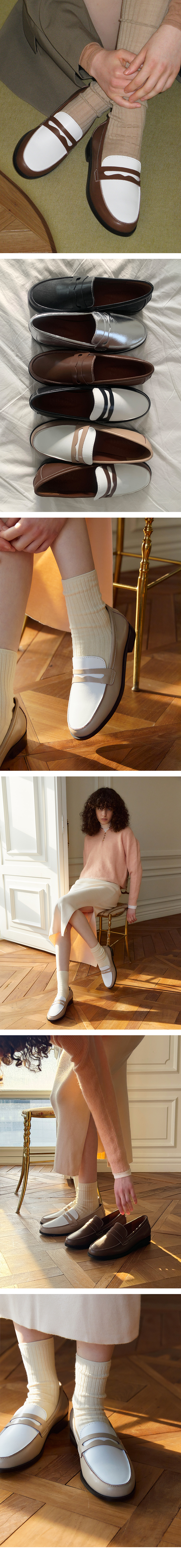 무드나잇 에이프릴 스티치 클래식 페니 로퍼 l 콤비베이지