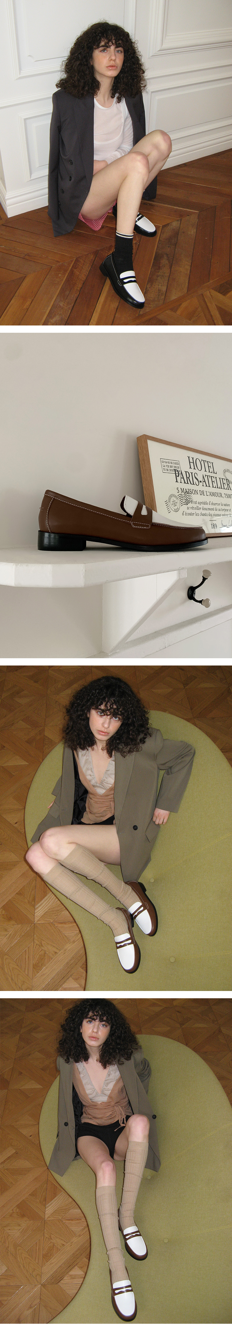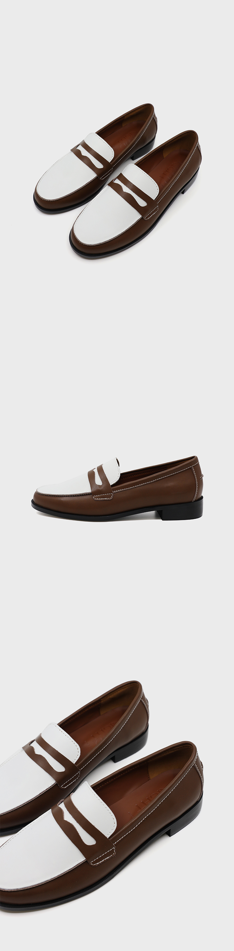 무드나잇 에이프릴 스티치 클래식 페니 로퍼 l 콤비브라운