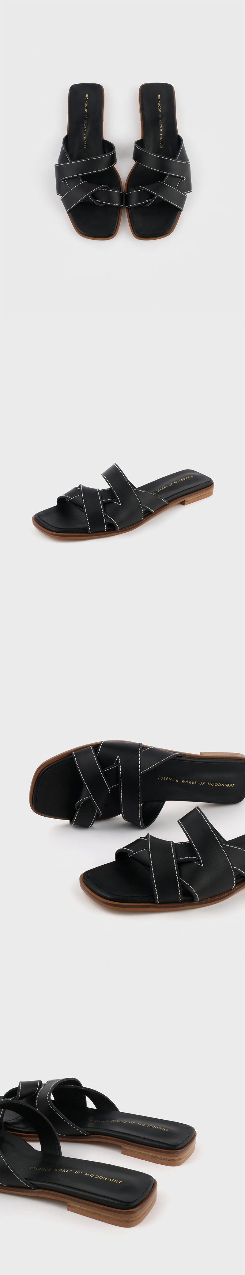 무드나잇 쥬드 스티치 슬라이드 샌들 l 블랙