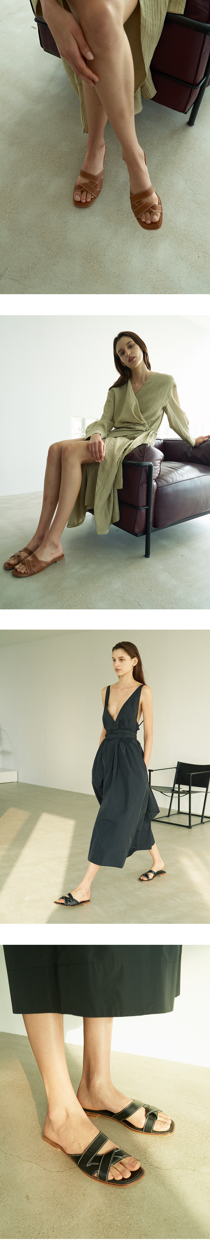 무드나잇 쥬드 스티치 슬라이드 샌들 l 아이보리