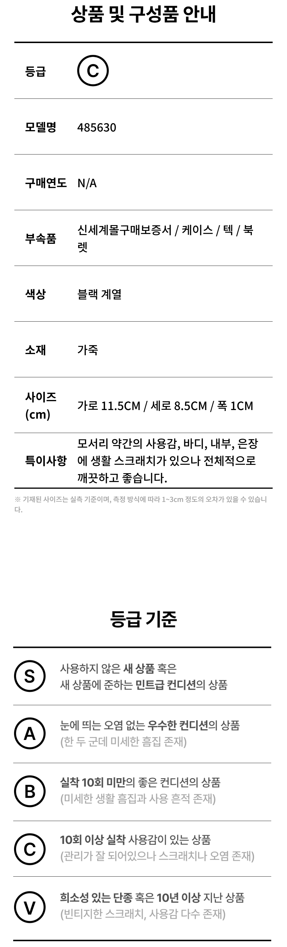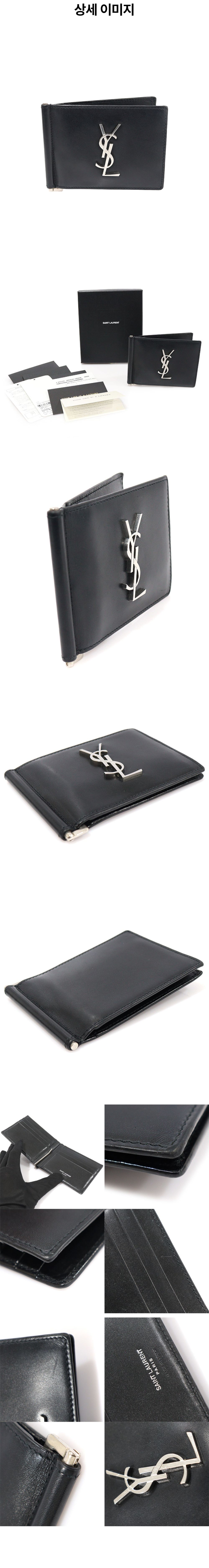 생로랑 485630 블랙 카프스킨 은장 모노그램 카드지갑 머니클립