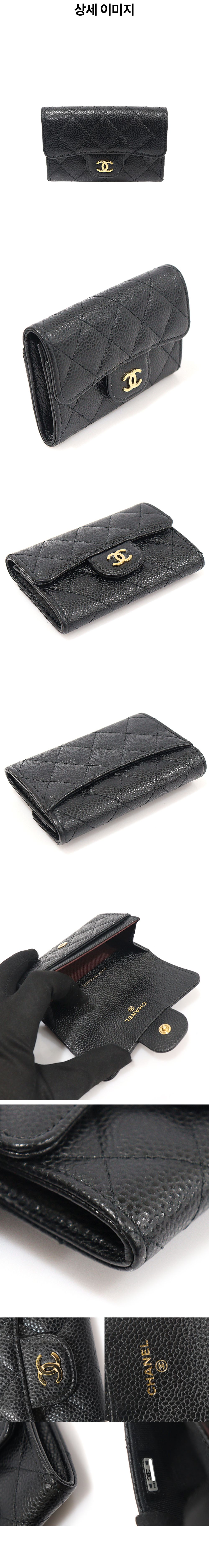 샤넬 AP0214 블랙 캐비어 금장 CC로고 클래식 카드지갑 (내장칩)