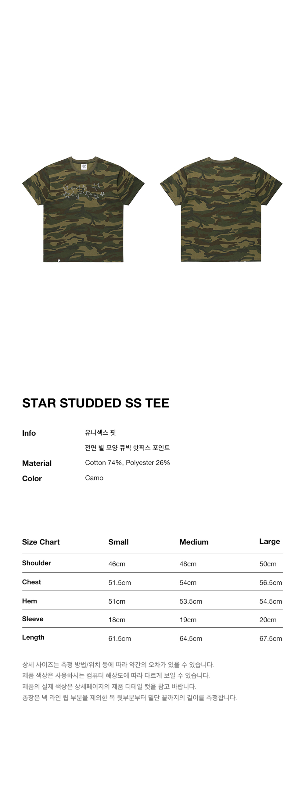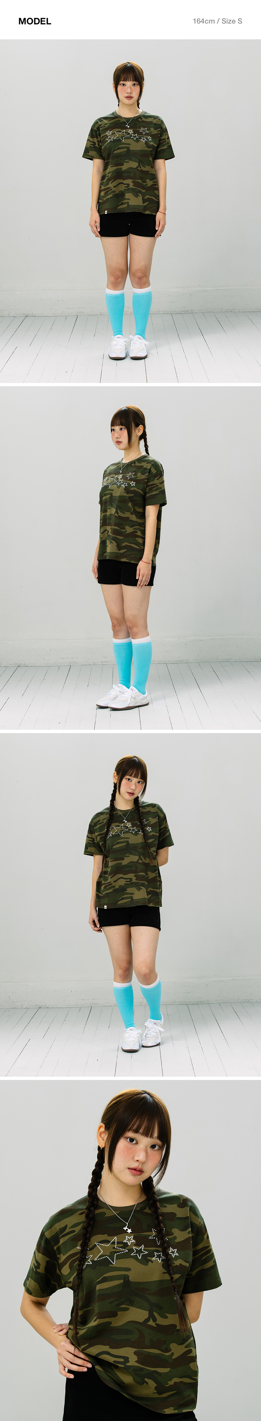 카비시 스타 스터디드 숏슬리브 티셔츠 카모