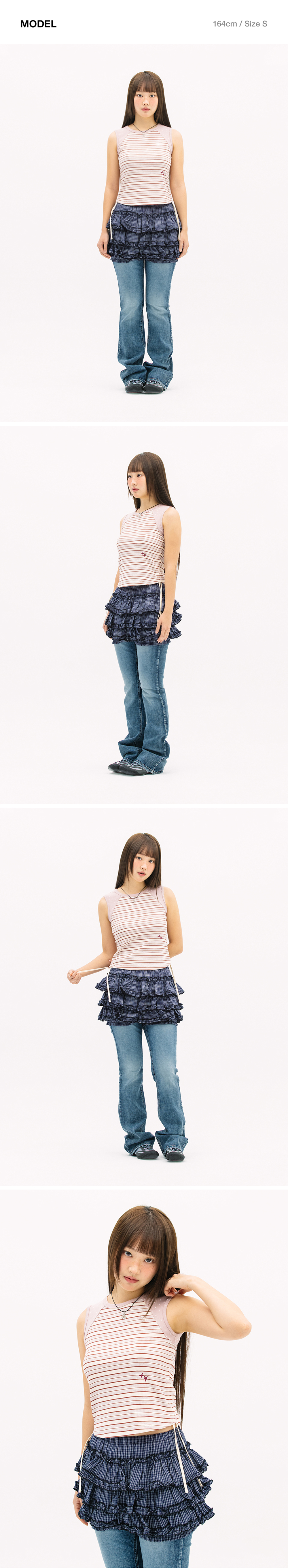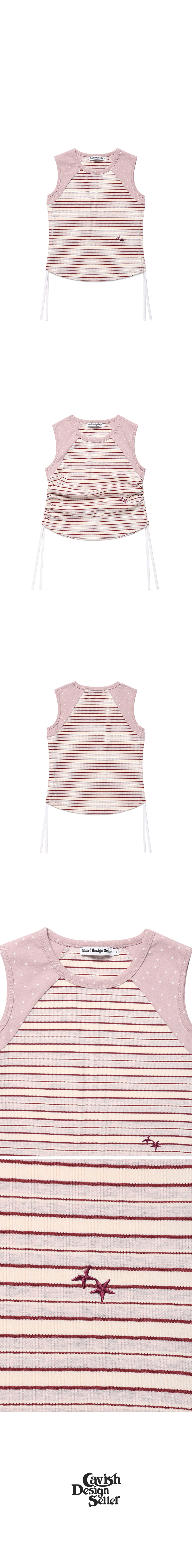 카비시 멀티 스트라이프 슬리브리스 핑크