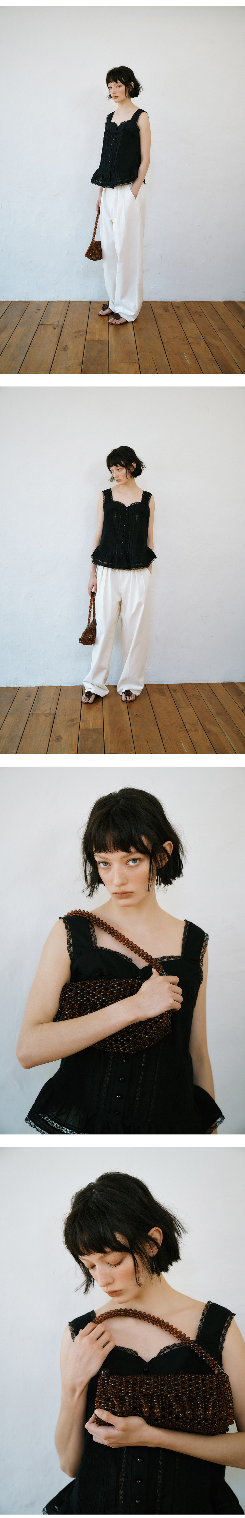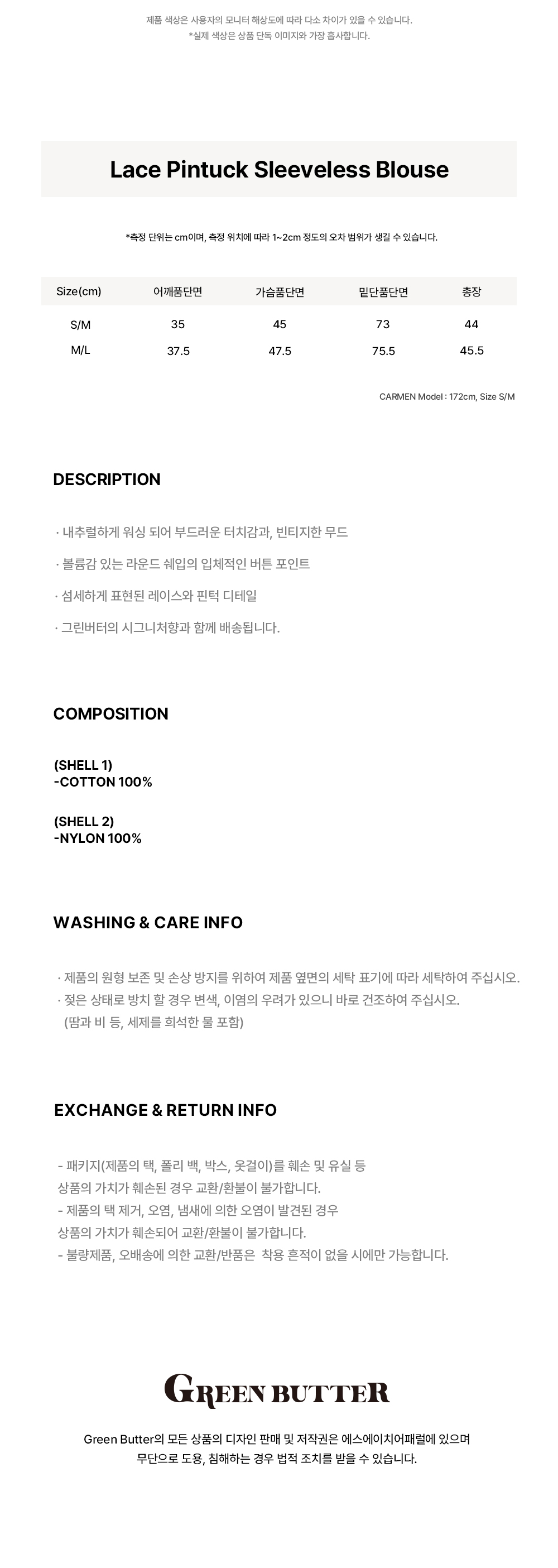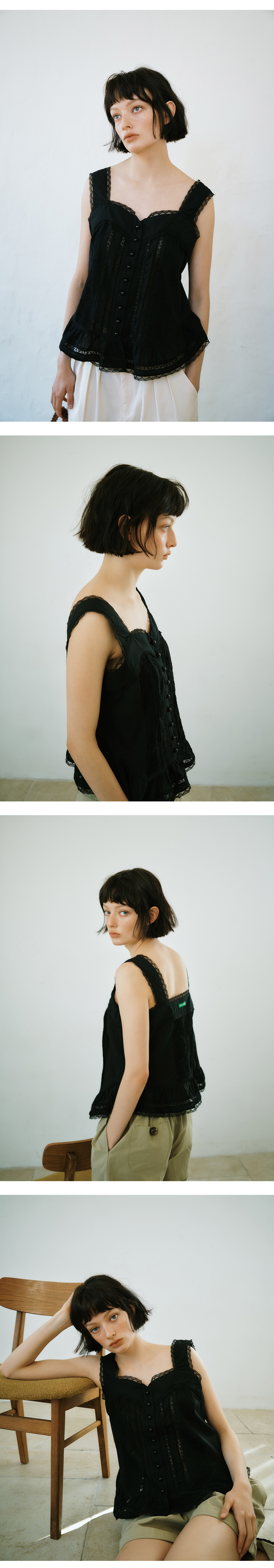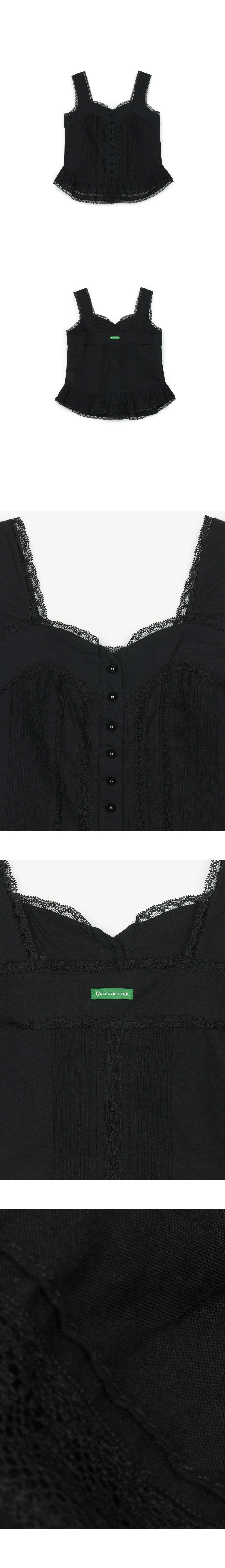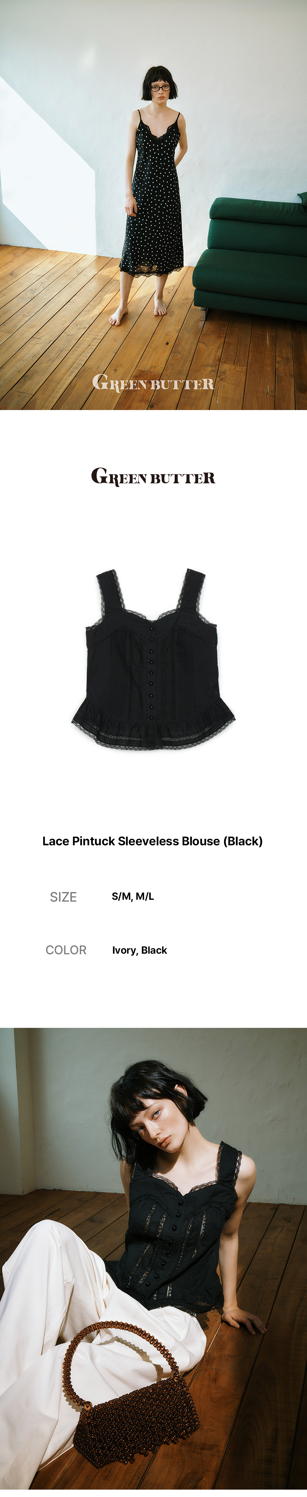 그린버터 레이스 핀턱 슬리브리스 블라우스 블랙