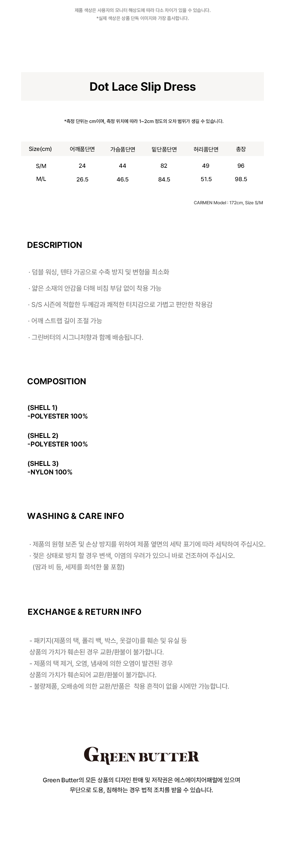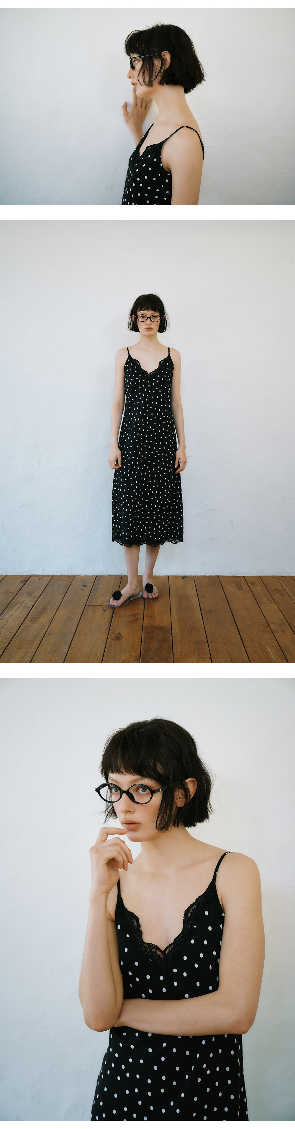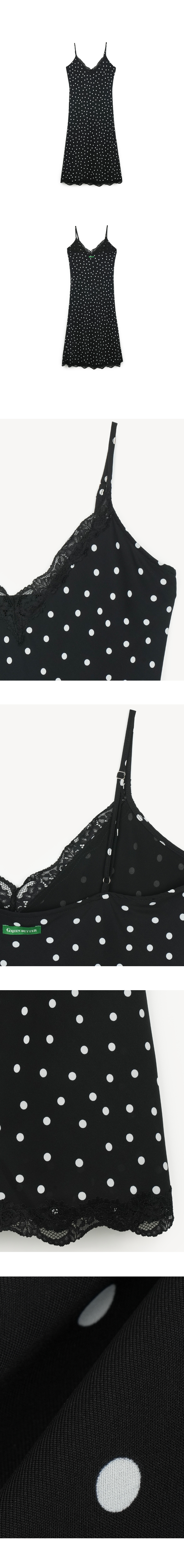 그린버터 도트 레이스 슬립 드레스 블랙
