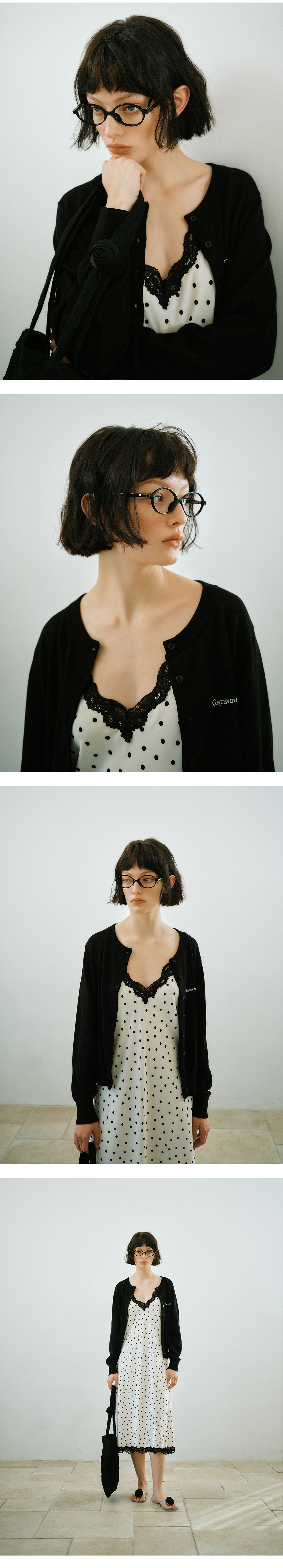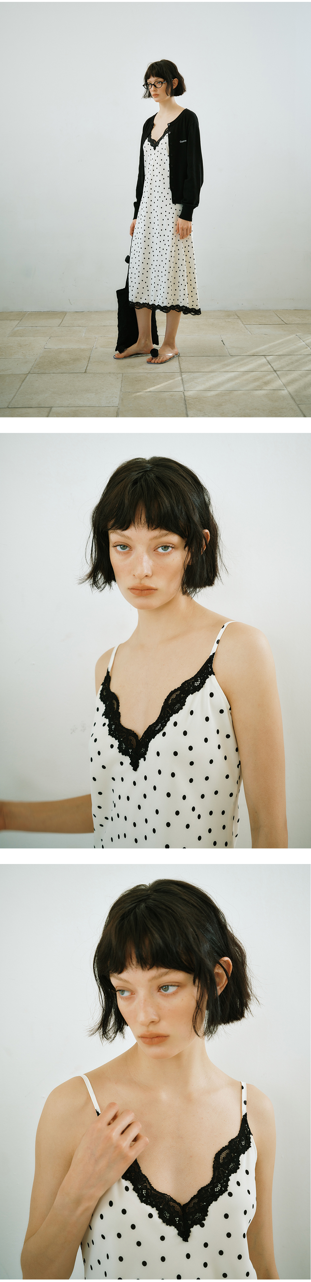 그린버터 도트 레이스 슬립 드레스 아이보리