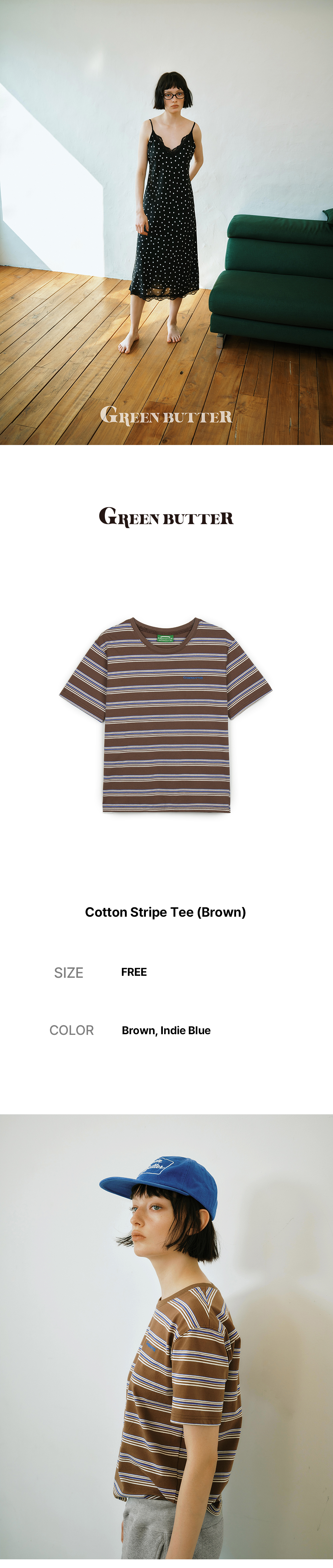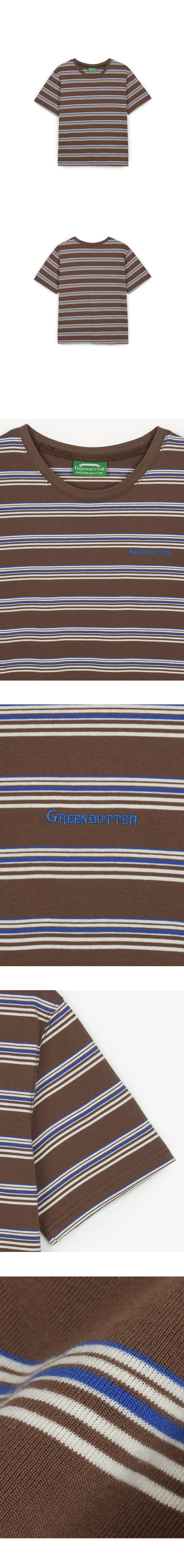 그린버터 코튼 스트라이프 티 브라운