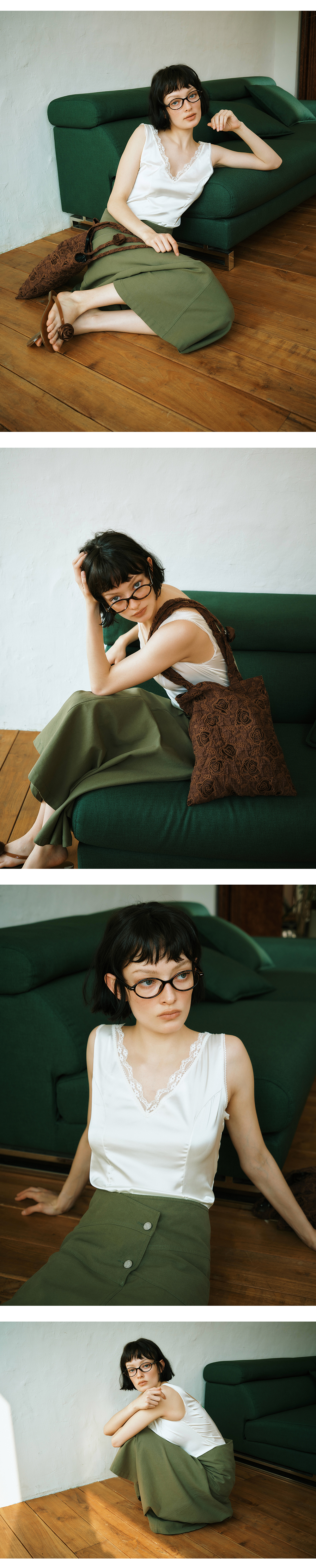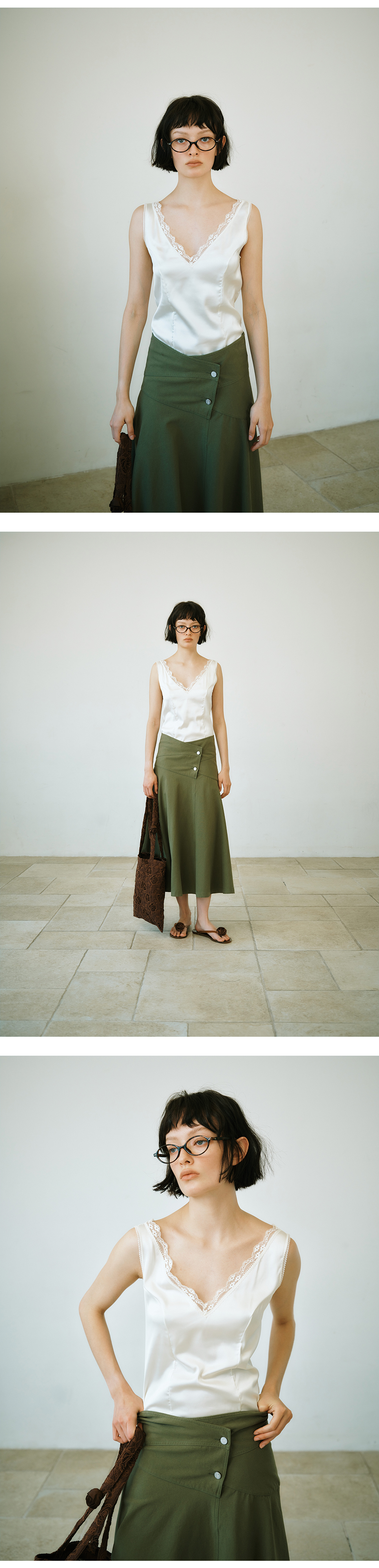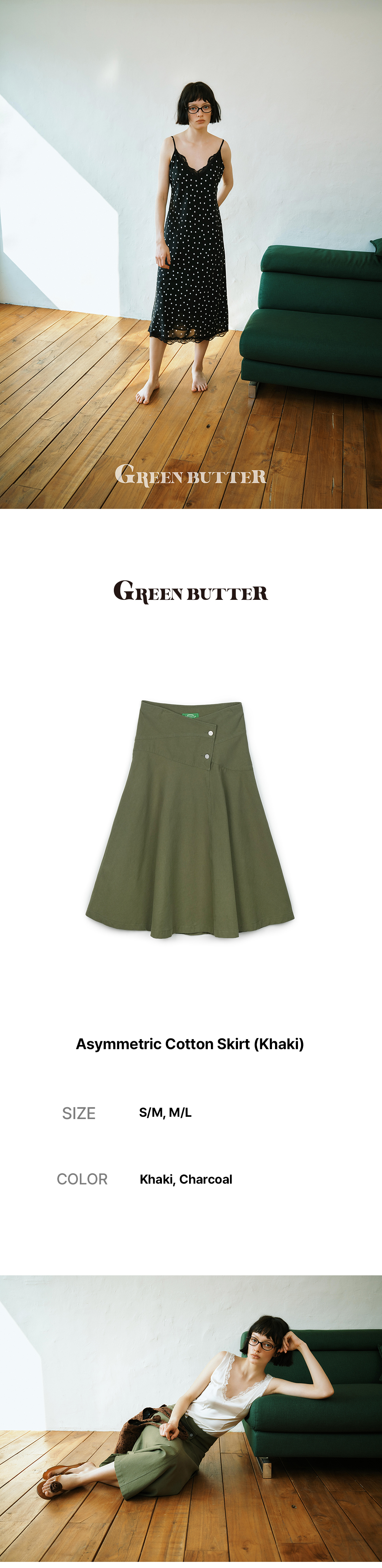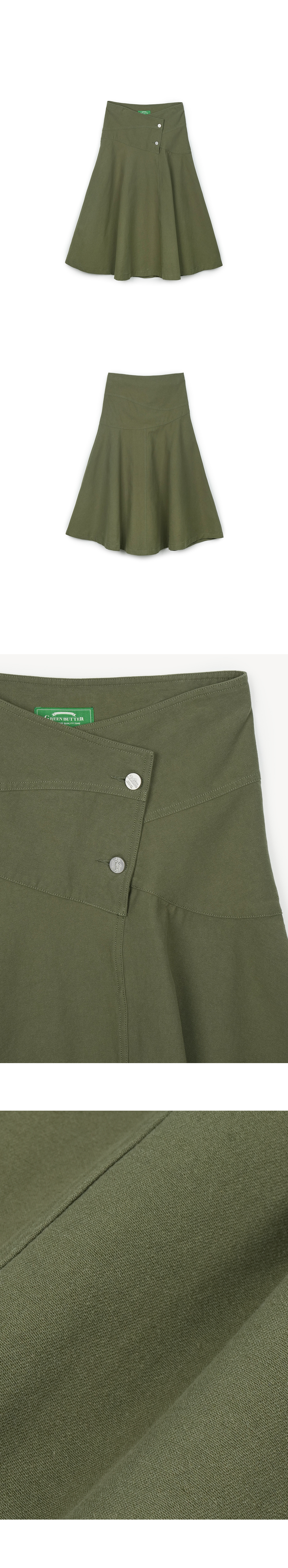 그린버터 비대칭 코튼 스커트 카키