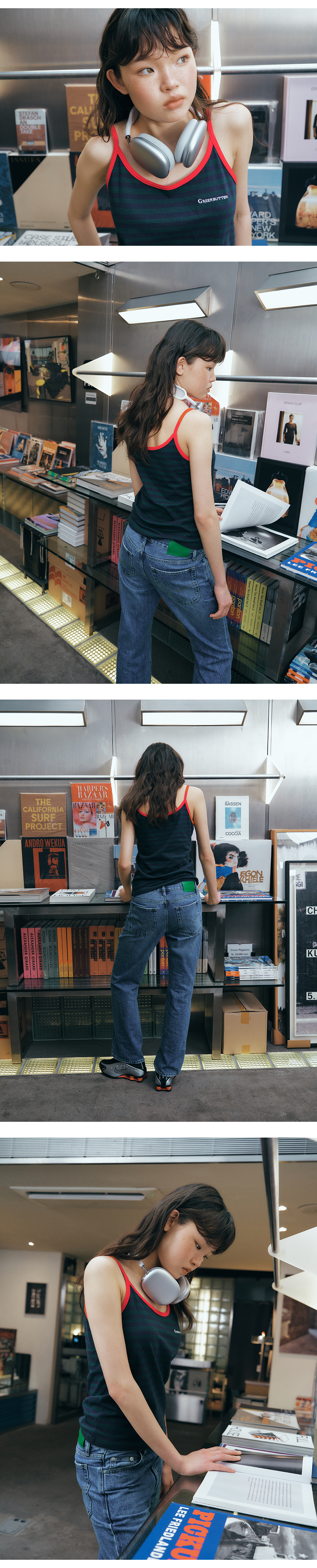 그린버터 러스틱 스트라이프 슬리브리스 네이비