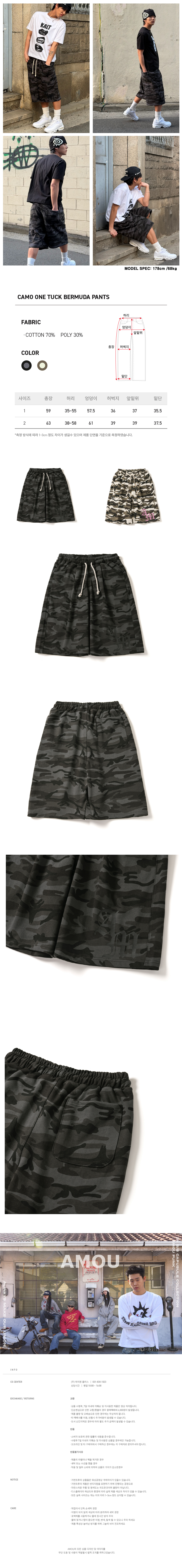 아모우 카모 원턱 버뮤다 팬츠 차콜