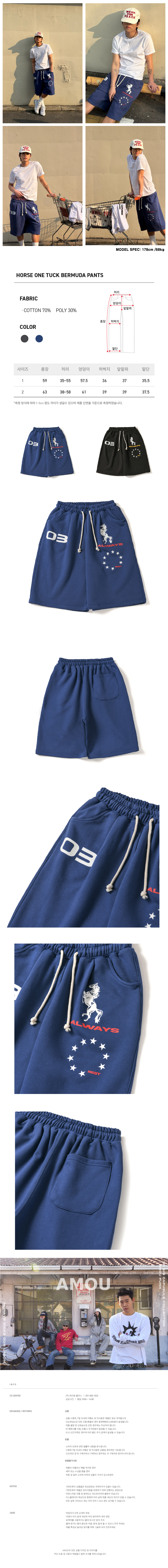 아모우 홀스 원턱 버뮤다 팬츠 블루