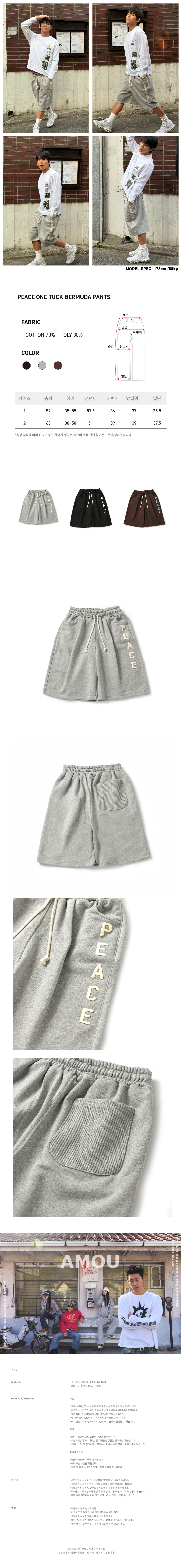 아모우 피스 원턱 버뮤다 팬츠 그레이