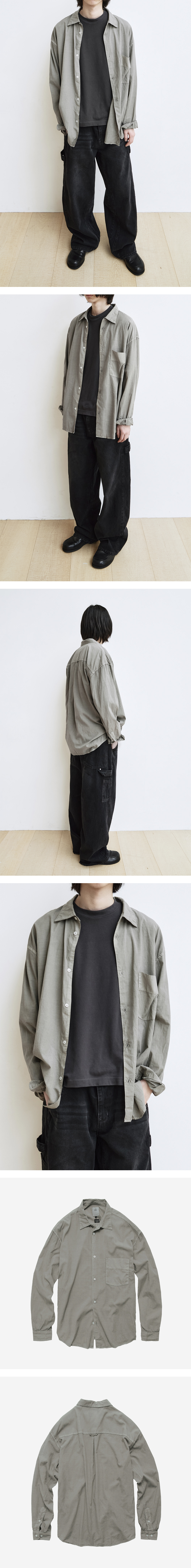 tenco loosed shirt 2.0 많은 사랑을 받은 전작 '루즈드 텐코'의 업그레이드 버전 제품입니다. 표면의 러프한 분위기, 그와 대비되는 극도로 섬세하고 부드러운 소재감이 특징적으로, 이를 구현하기 위해 후가공에 적합한 내구성의 고품질 소재를 엄선하여 만들어지며, 본래 미백색의 원단으로 완성한 제품을 2회 이상 가먼트째 염색하여 풍부한 색감을 입히고, 고강도 워시를 가해 부드러운 터치감을 만들어주었습니다. 이 과정에서 생기는 밀도감 있는 퍼커링, 그리고 표면이 날아가 빈티지한 질감을 가지게 되는 자개 단추 등은 섬세하고 부드러운 소재와 대비되는 러프한 인상을 만들어줍니다. 자연스러운 셔츠의 분위기를 추구하여 좁은 목둘레, 가까운 깃의 거리, 사선 벤트 등 주로 디테일 주변부에 해석이 가미되었습니다. *모델: 178cm / 마른 체형, 3사이즈 착용
