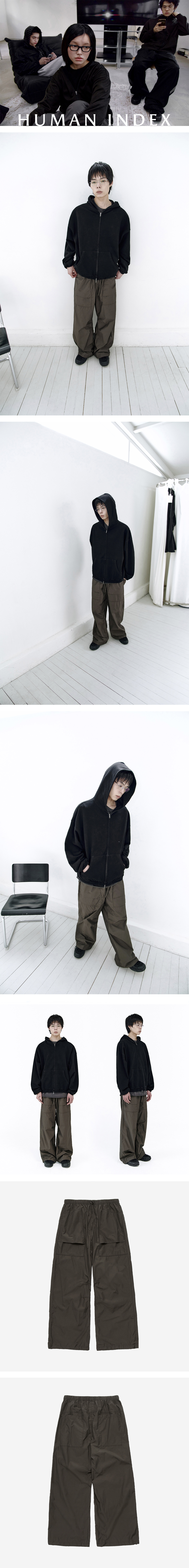 human hunter cargo pajama (nylon) - 와이드한 실루엣의 이지한 파자마 팬츠 - 여름 시즌까지 착용 가능한 라이트한 두께감 - 가먼트 워싱 - 넉넉한 크기의 입체적 퍼티그 포켓 - 2개의 백 포켓 구성 - 편안함을 더한 허리 밴딩 구조 - 무릎 안쪽 다트 디테일로 구현한 입체 실루엣 - 실루엣 변형이 가능한 밑단 스트링 *남성 모델 : 180cm / 마른 체형, 4사이즈 착용