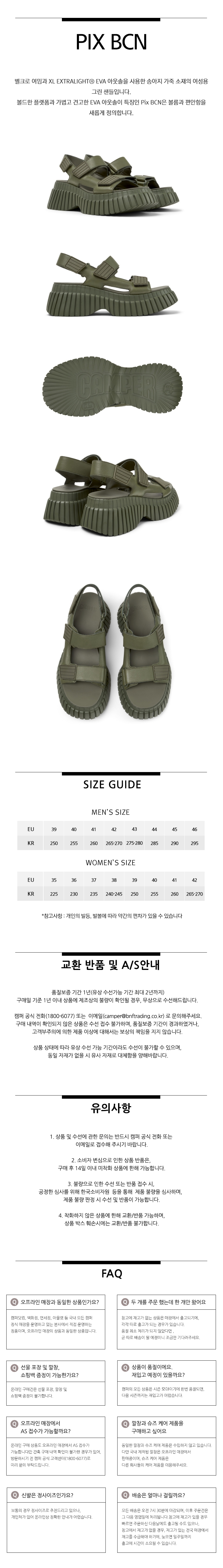 캠퍼 여성 pix BCN 샌들 카키