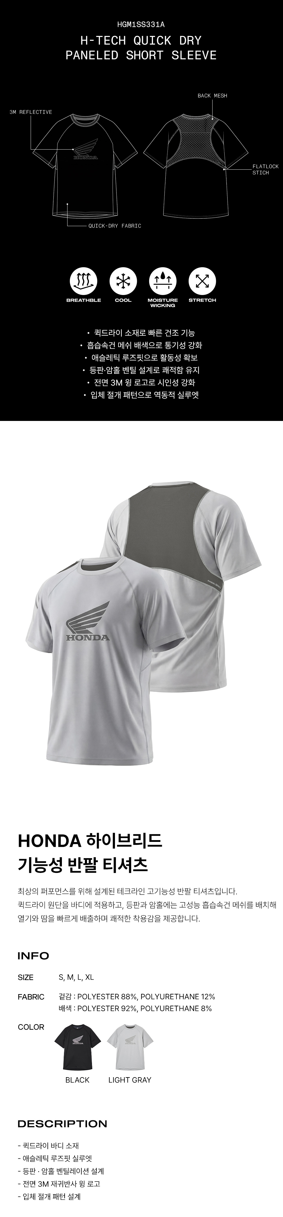 혼다 H-Tech 퀵드라이 패널 반팔 티셔츠 라이트 그레이